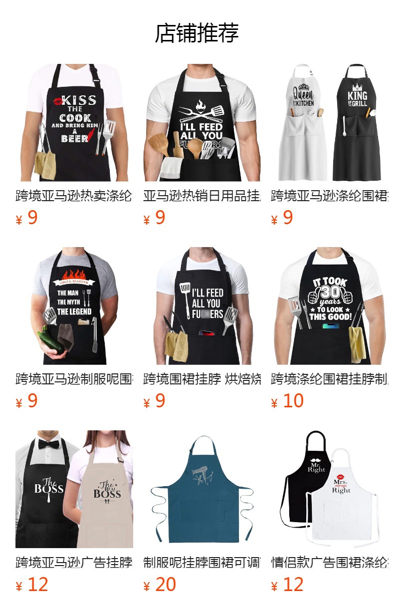 Transfronterizo Amazon venta caliente delantal de poliéster letras colgar cuello restaurante ropa de trabajo delantal de cocina doméstico al por mayor personalizado