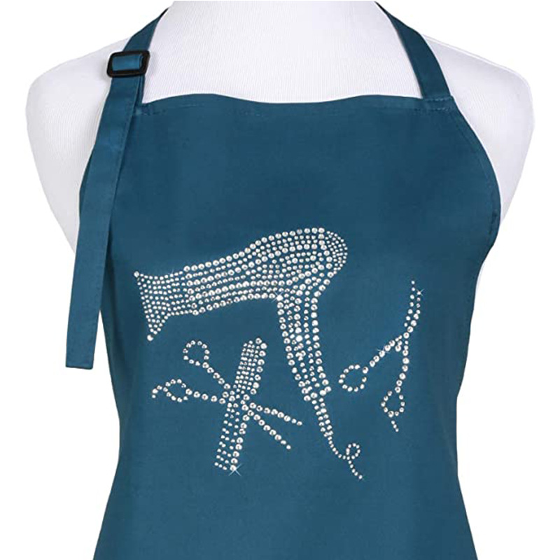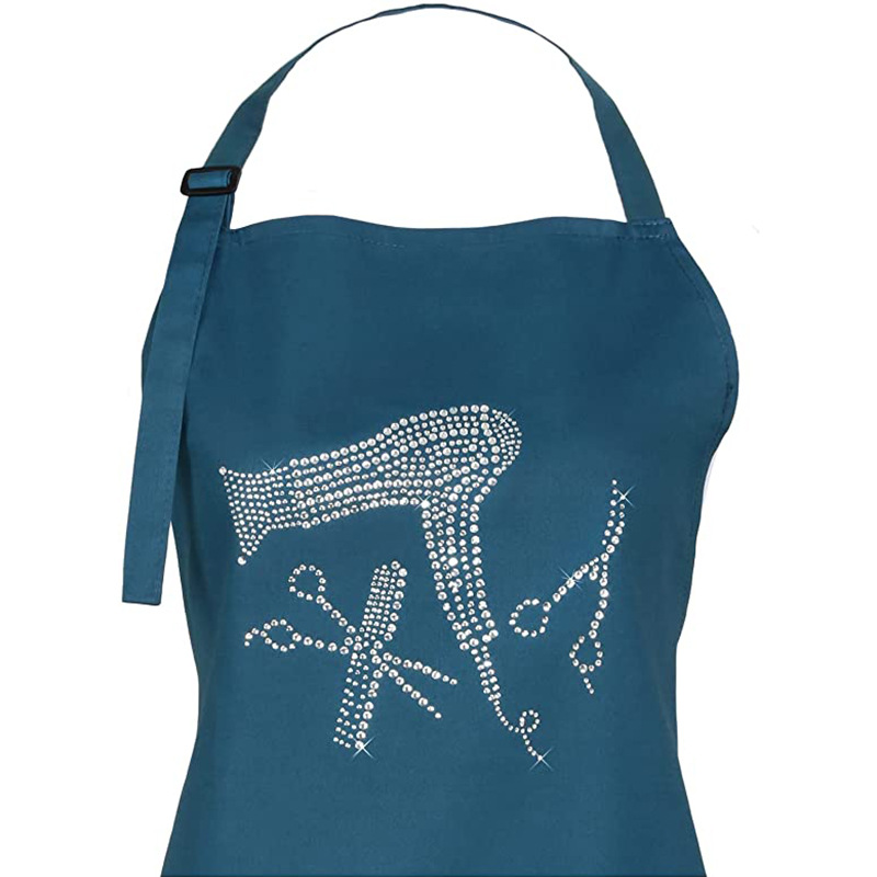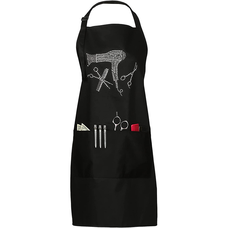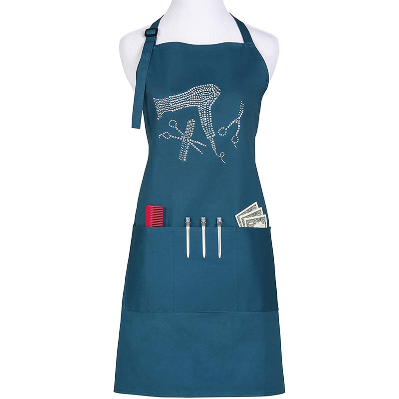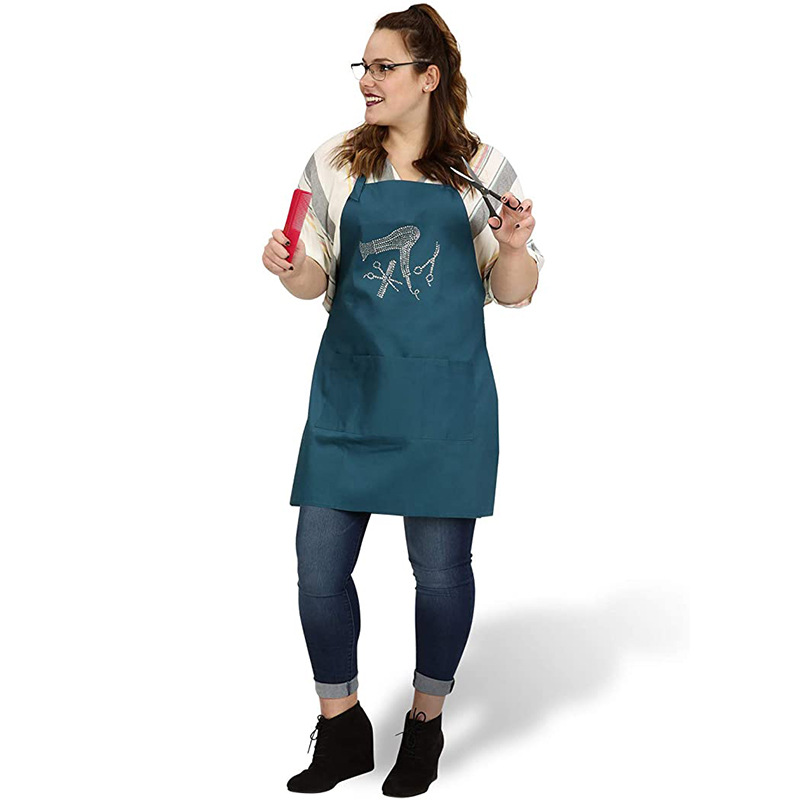Delantal con cuello halter uniforme de Amazon con correas ajustables para los hombros, delantal de trabajo de peluquero con logo impreso a la moda, venta al por mayor