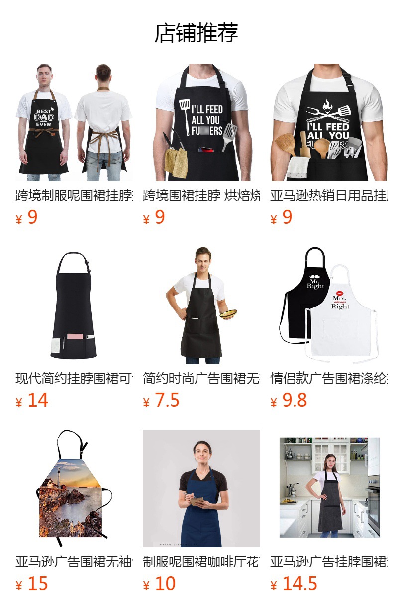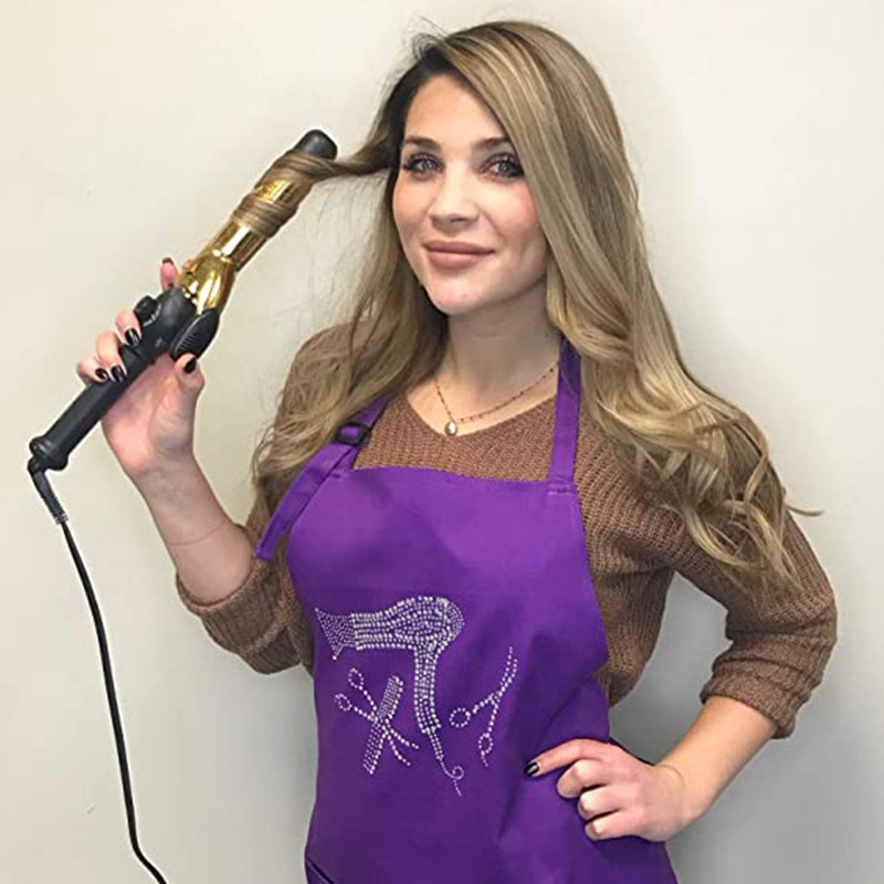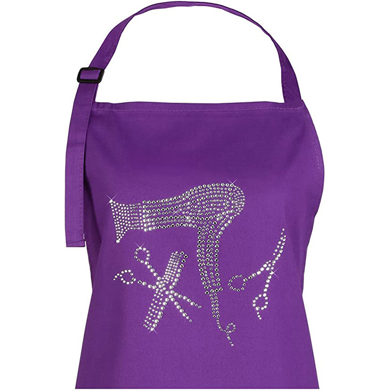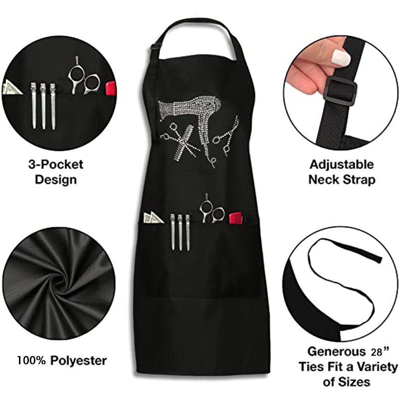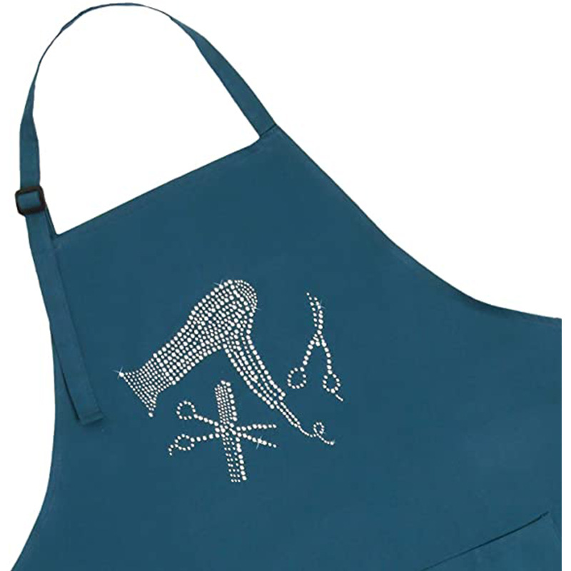 Delantal con cuello halter uniforme de Amazon con correas ajustables para los hombros, delantal de trabajo de peluquero con logo impreso a la moda, venta al por mayor