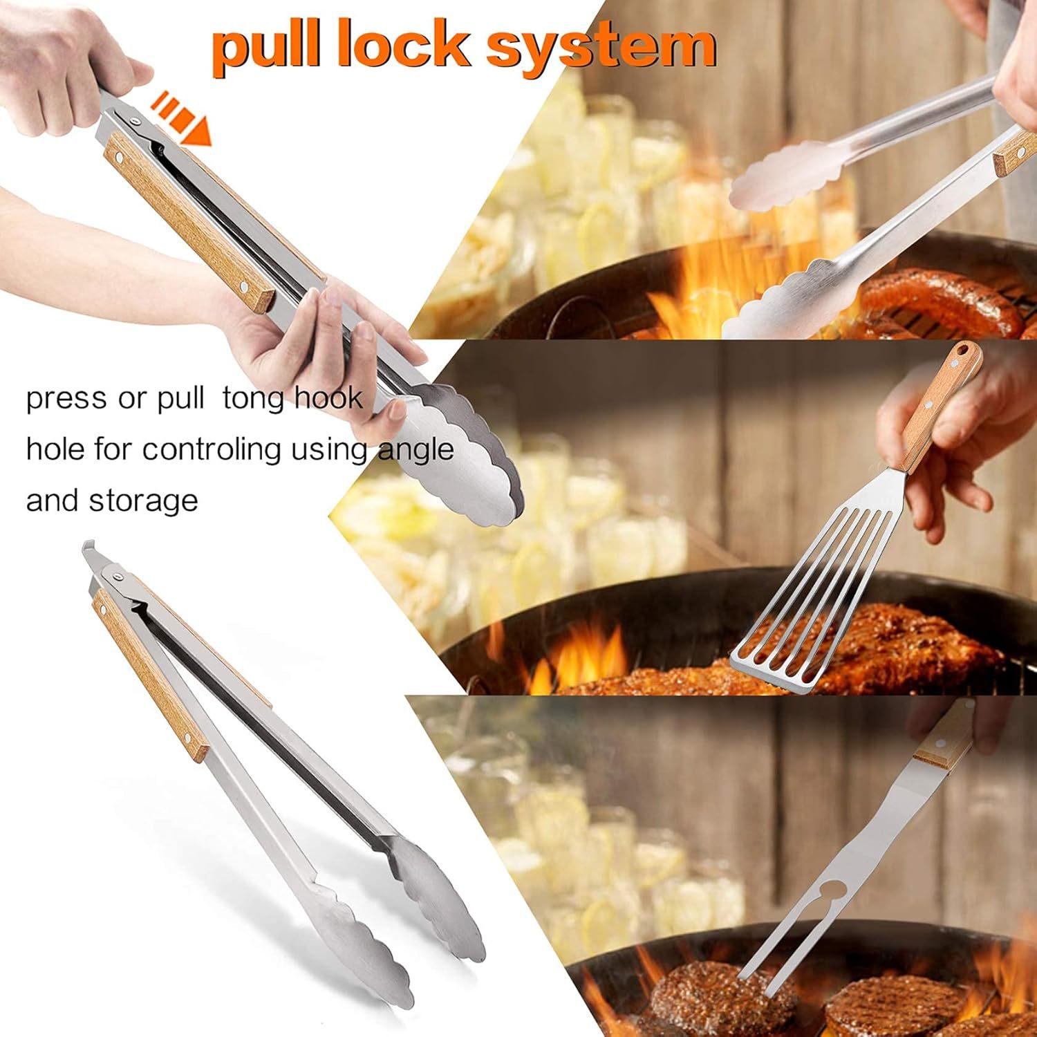 Amazon Venta caliente Acero inoxidable Mango para hornear Juego de herramientas para acampar al aire libre Juego de combinación de barbacoa en stock