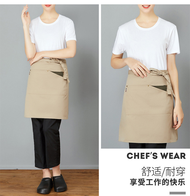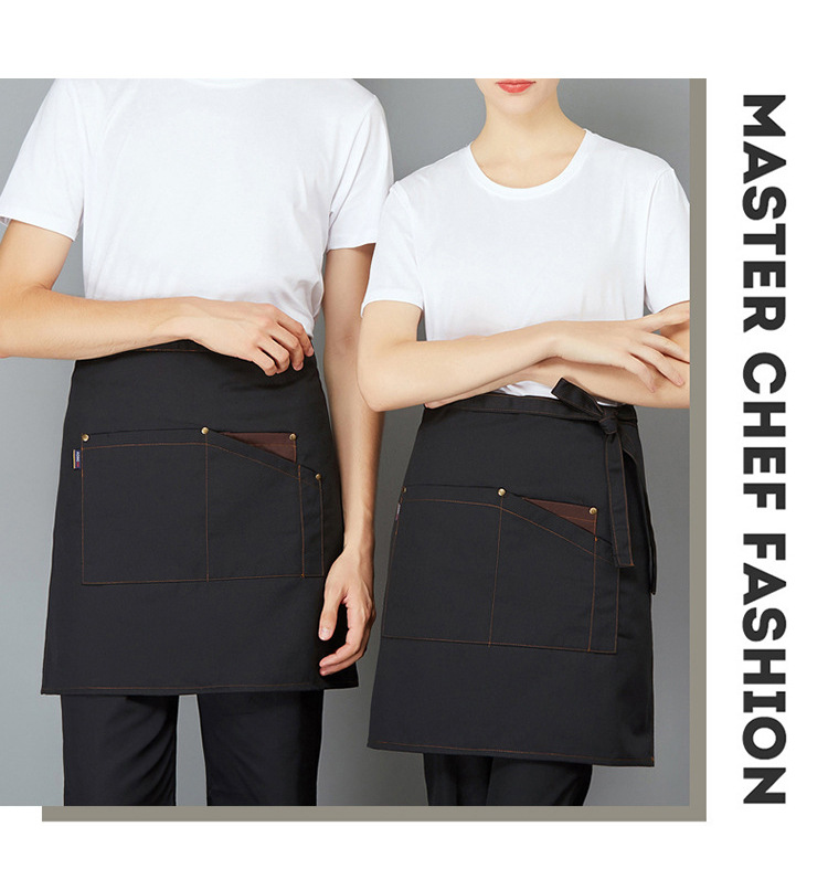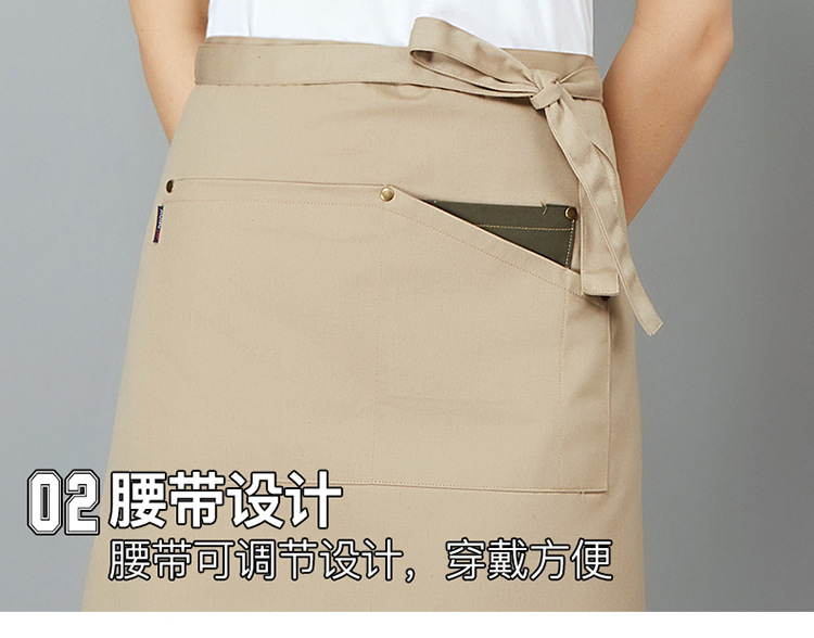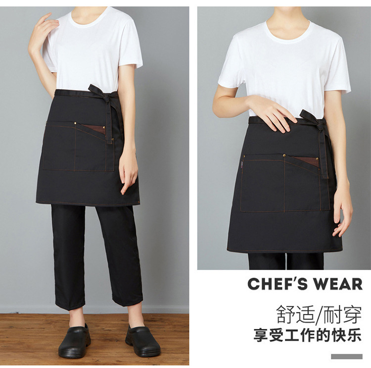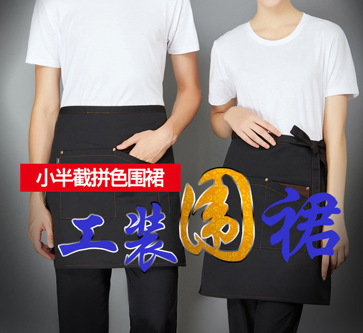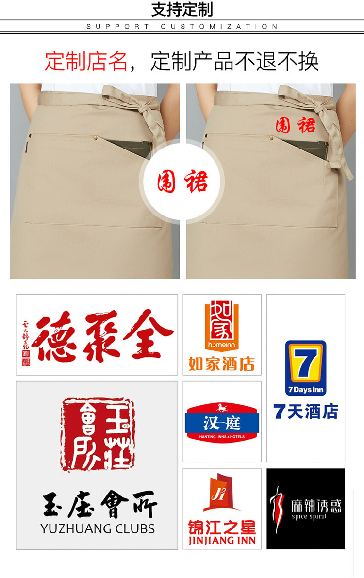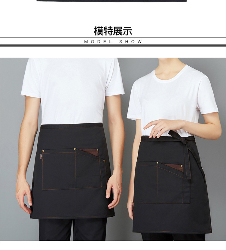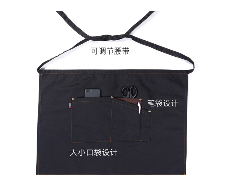Amazon medio delantal logotipo impreso leche tienda de té cafetería ropa de trabajo corto medio lienzo delantal al por mayor