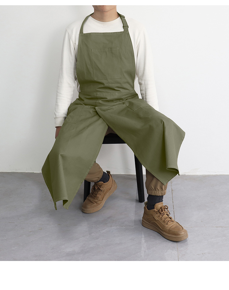 Transfronterizo Amazon delantal de lona personalizado logotipo bifurcado pantalones cuello colgante ajustable pintura delantal de ropa de trabajo