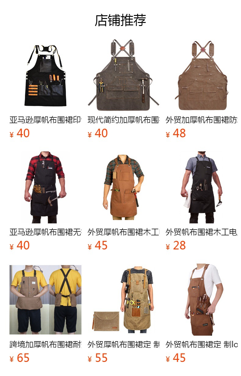 Comercio exterior carpintería delantal estilo europeo y americano electricista jardinería ropa de trabajo parrilla casa cocina gruesa lona delantal al por mayor