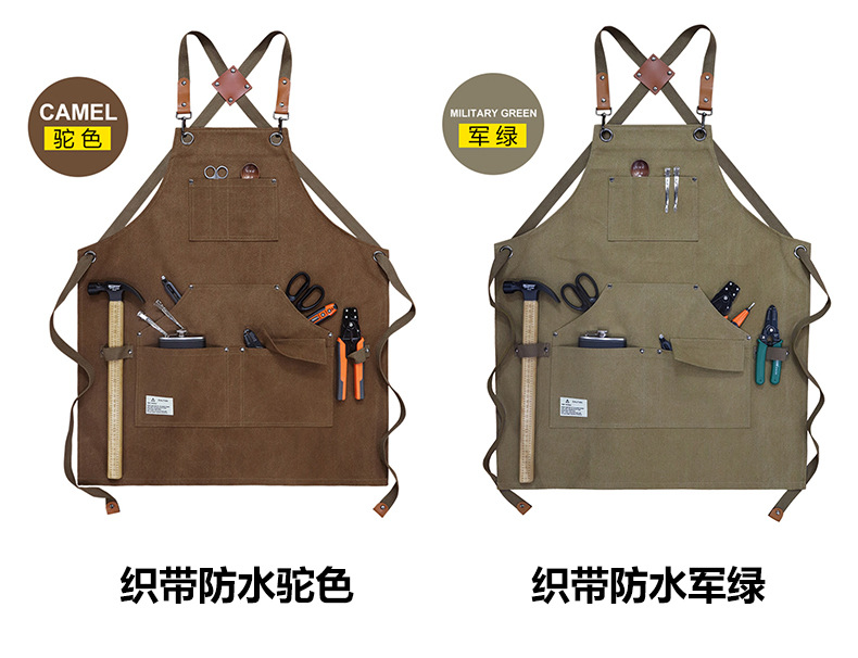 Delantal de lona gruesa Amazon con logotipo personalizado, ropa de trabajo para mecánicos de automóviles, carpintería, delantal de herramientas con múltiples bolsillos, venta al por mayor.