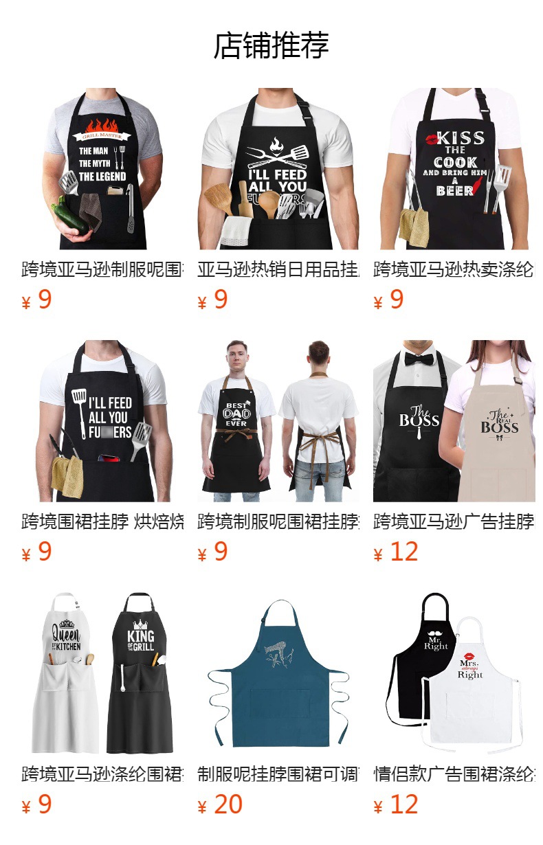 Delantal de poliéster transfronterizo, ropa de cuello halter, regalo de cumpleaños, restaurante antiincrustante, ropa de trabajo de cocina, delantal de casa al por mayor