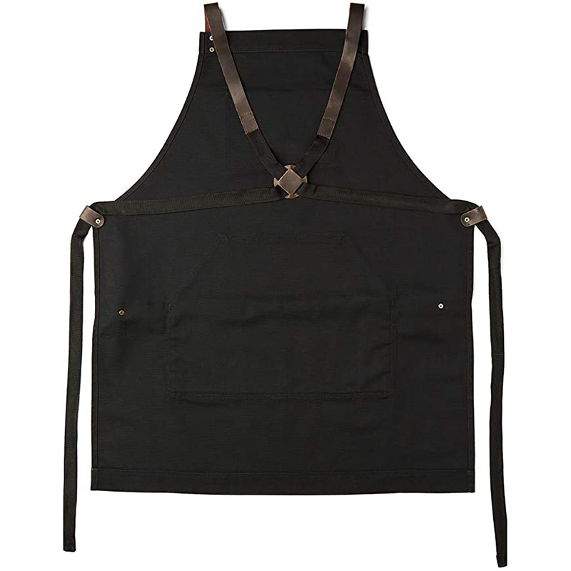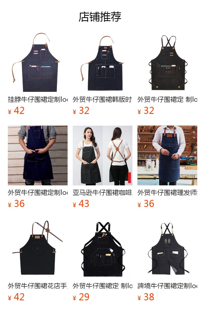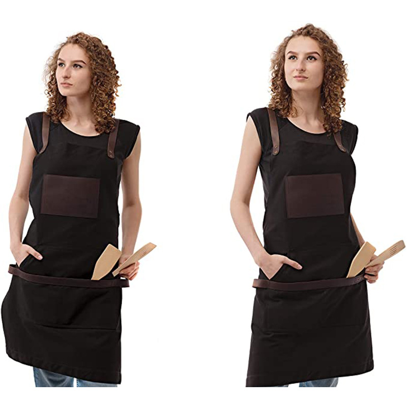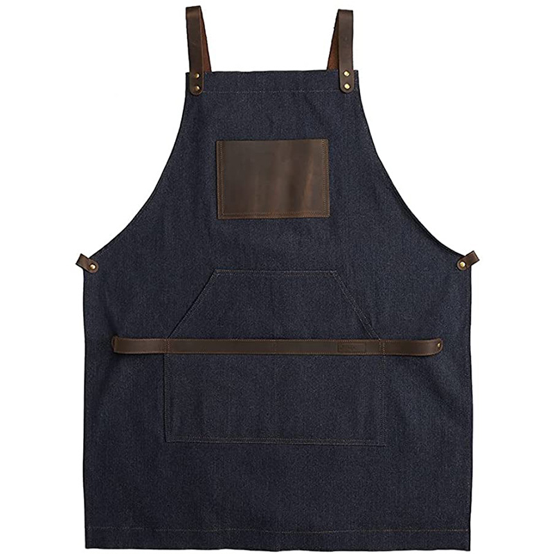 Moderno simple Denim delantal pu cuero bolsillo barbacoa panadero restaurante peluquero trabajo delantal fábrica al por mayor
