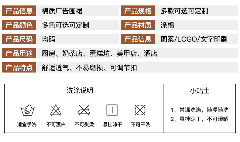 Delantal de publicidad correa cruzada algodón catering delantal camarero chef ropa de trabajo hogar cocina delantal al por mayor