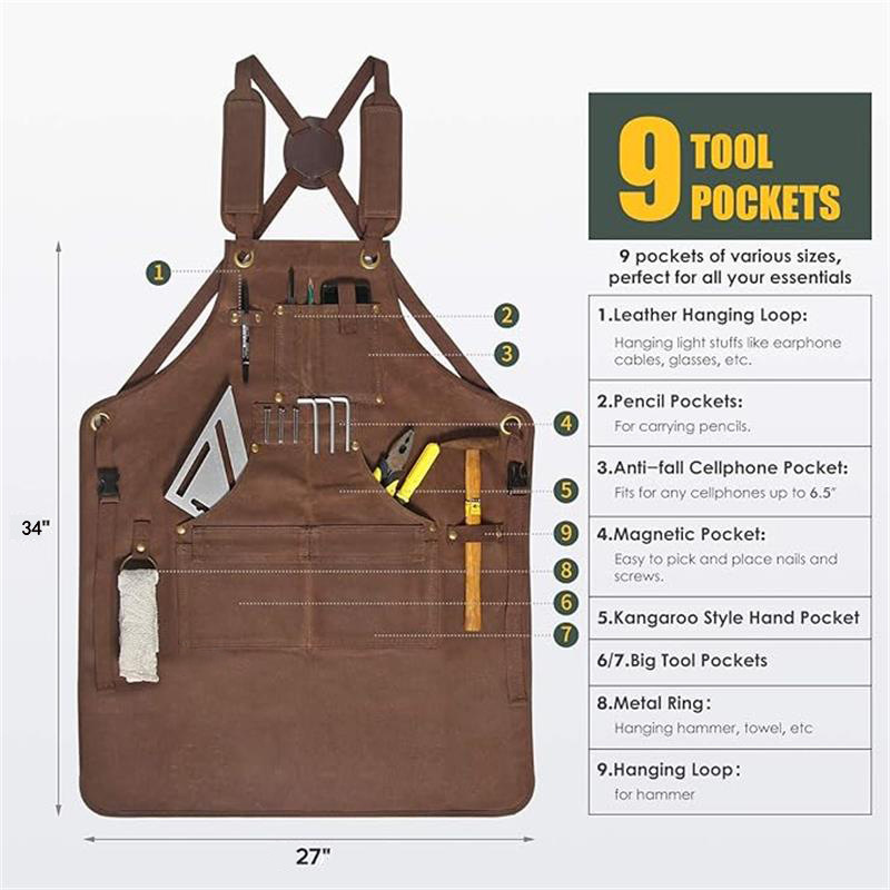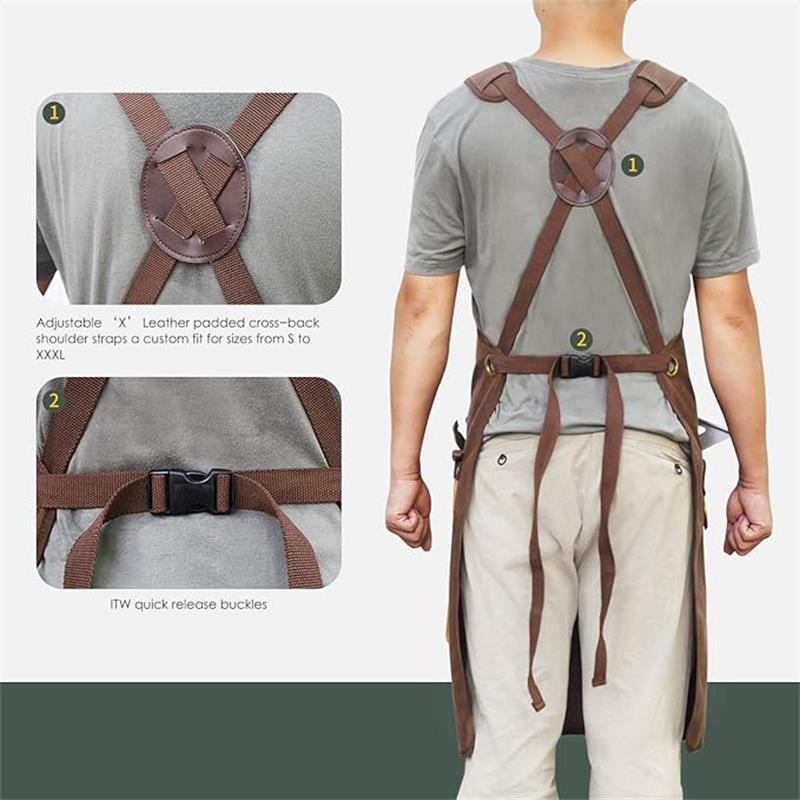 Transfronterizo Amazon delantal de lona gruesa con cinturón de imán cruzado electricista carpintería ropa de trabajo herramientas de reparación de automóviles delantal