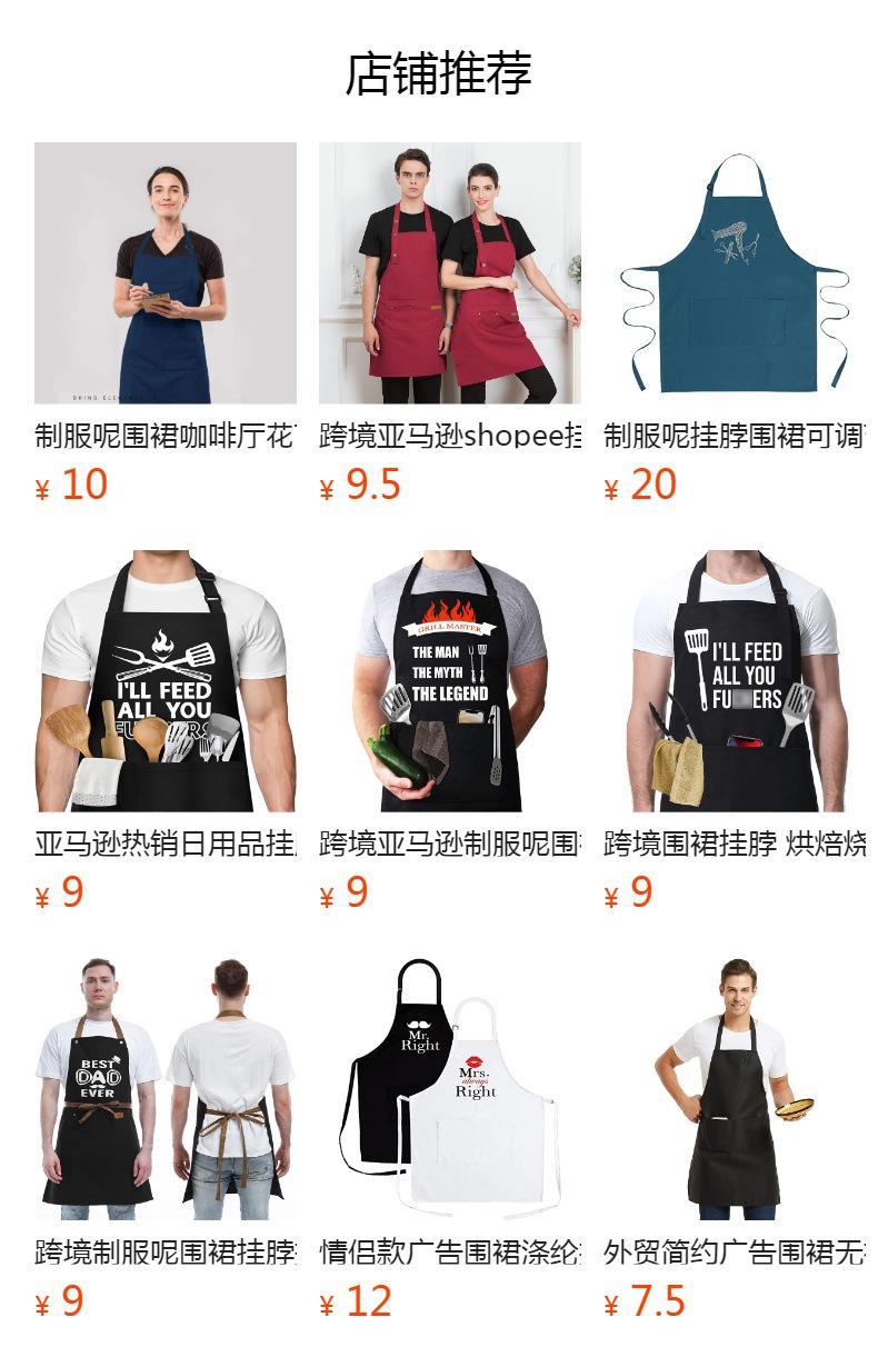 Transfronterizo Amazon publicidad Halter delantal logotipo personalizado barbacoa restaurante guardapolvos hogar cocina delantal al por mayor