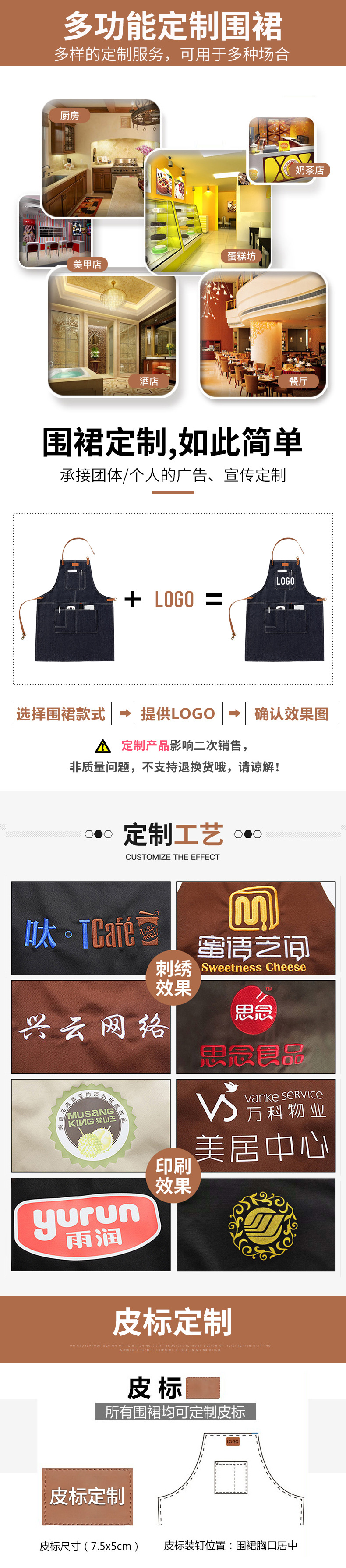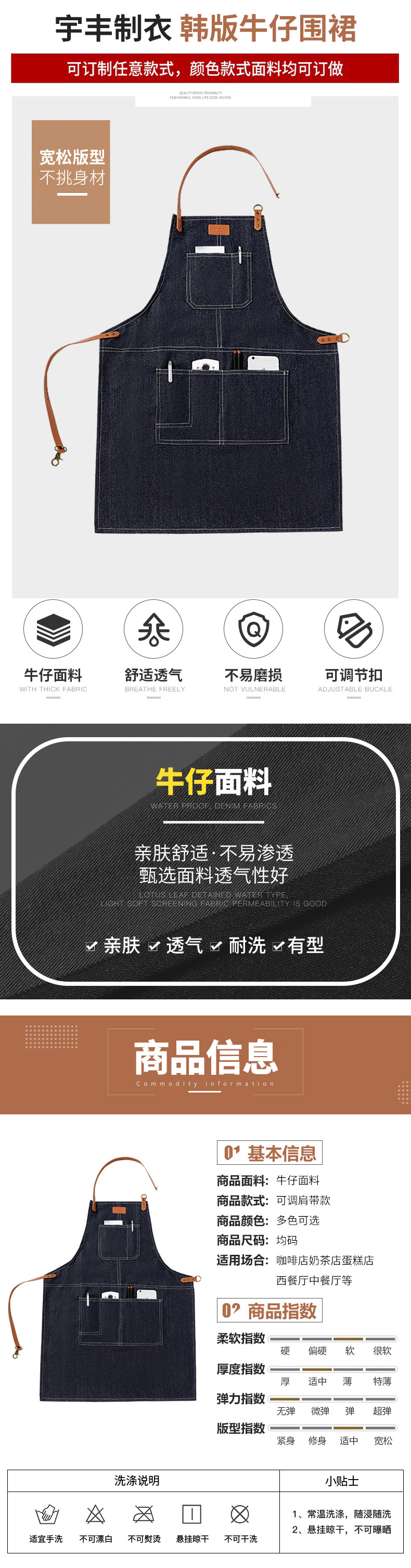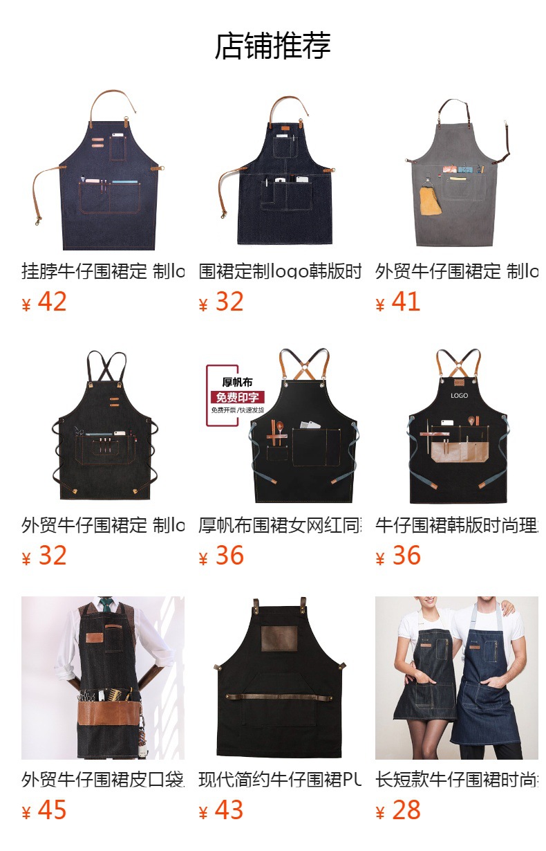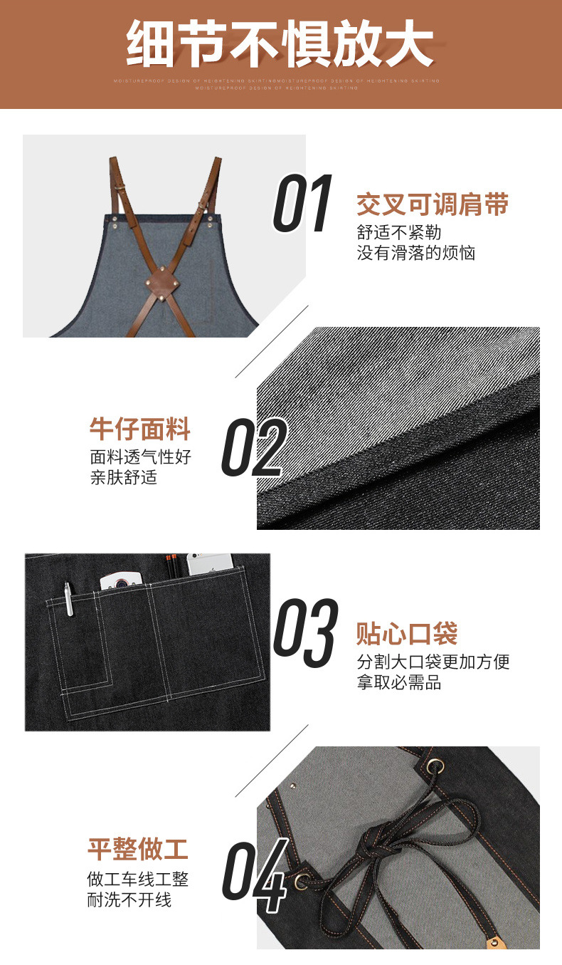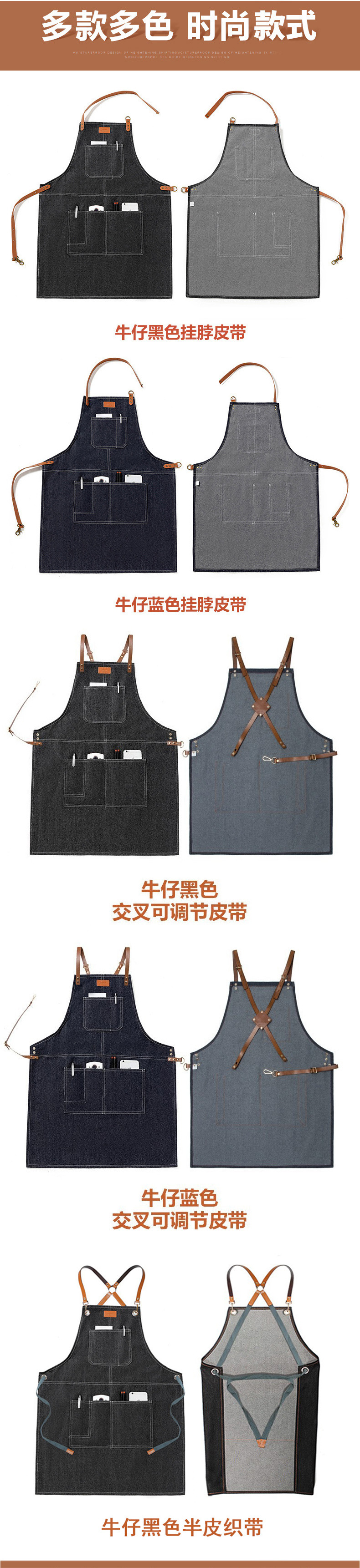 Comercio exterior Denim delantal moda coreana logotipo personalizado restaurante leche té cafetería delantal de trabajo al por mayor personalizado