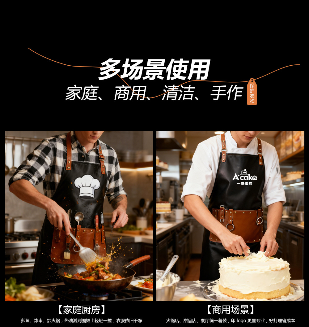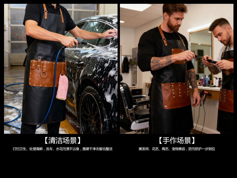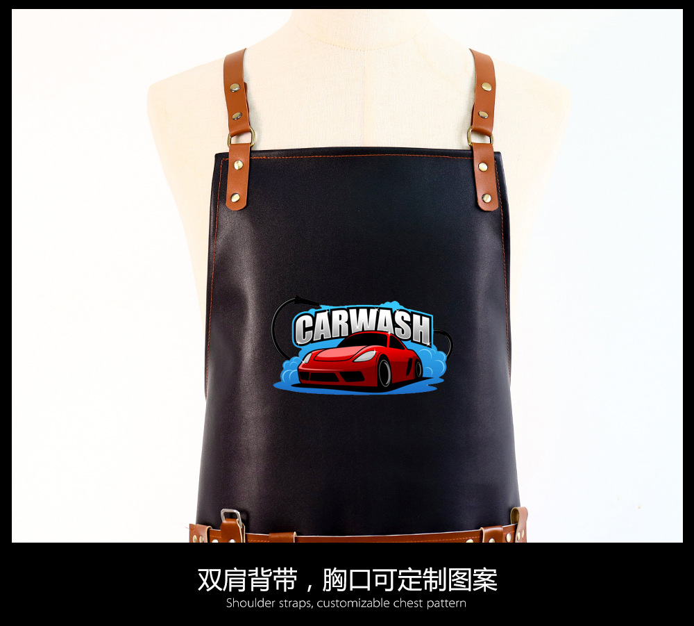 Transfronterizo PU delantal impermeable a prueba de agua a prueba de aceite acuático lavado de coches granja ropa de trabajo logo personalizado delantal hecho a mano al por mayor