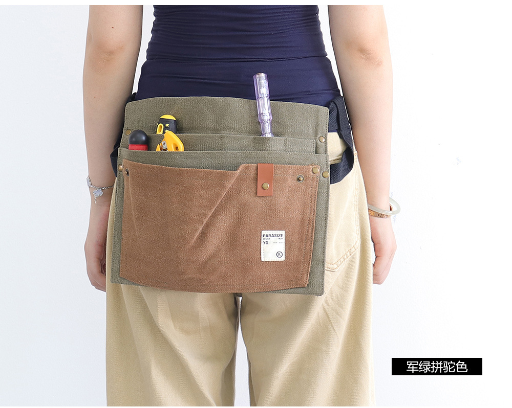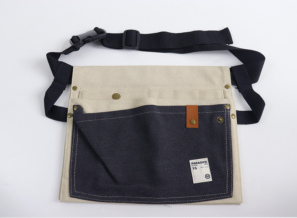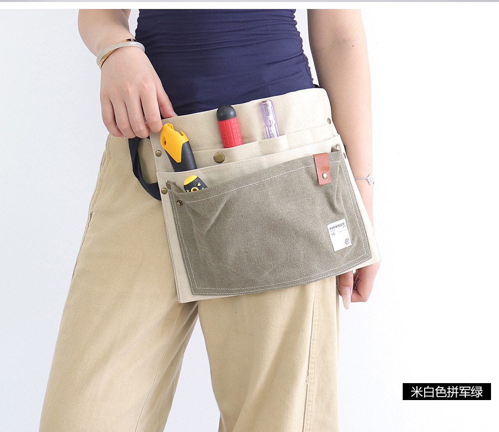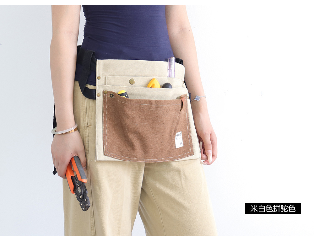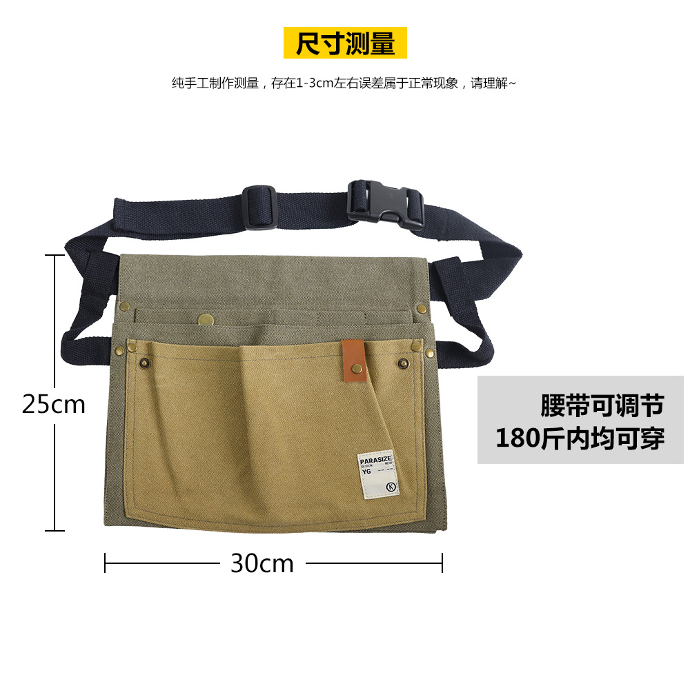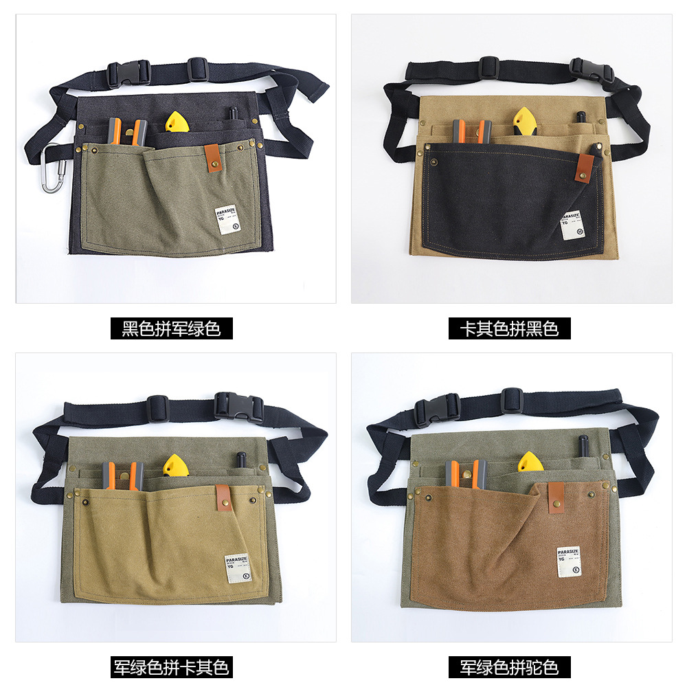 Nuevo delantal de lona gruesa transfronteriza logotipo personalizado de moda coreana empalmado de gran capacidad de lona herramientas de cintura delantal