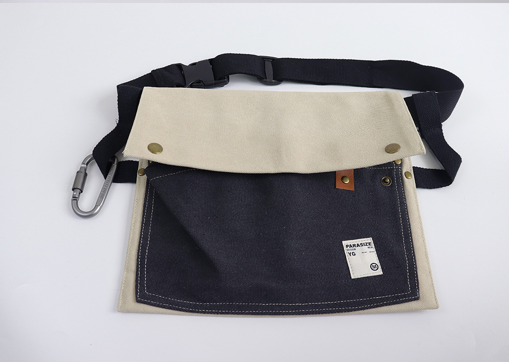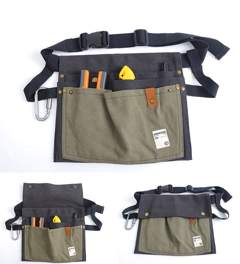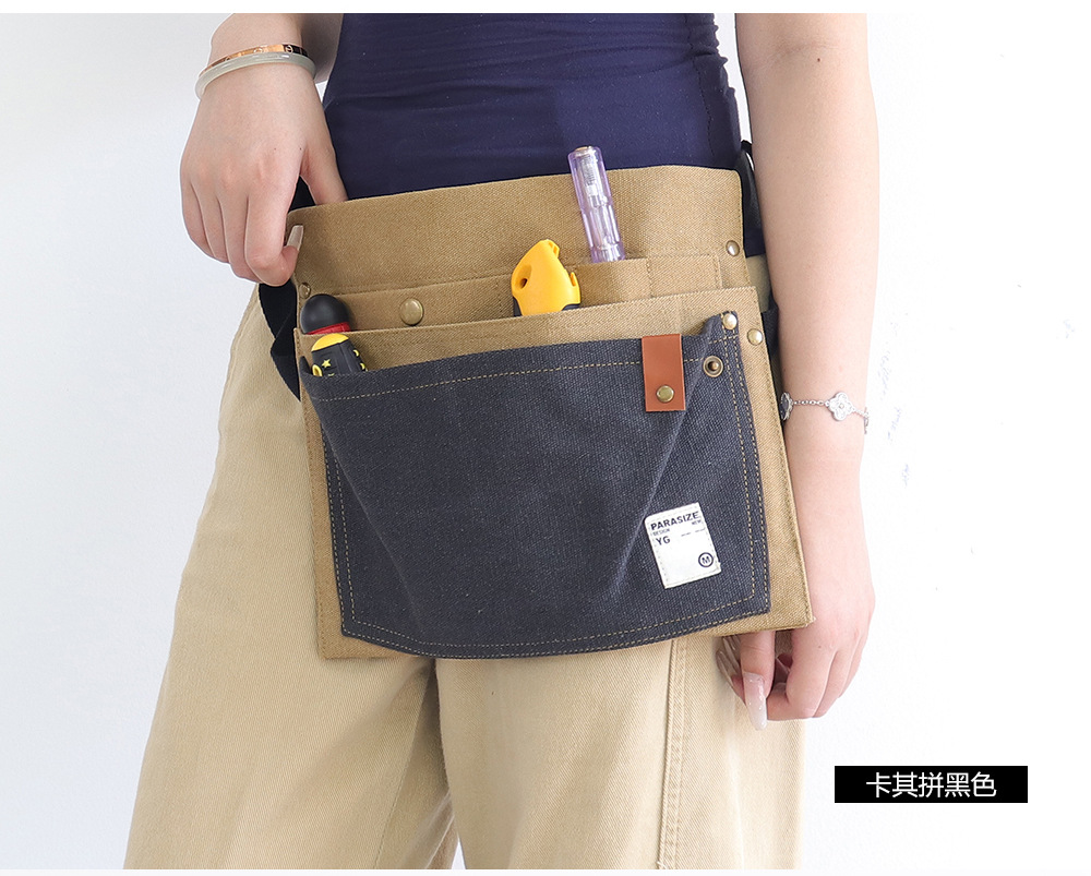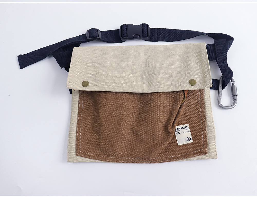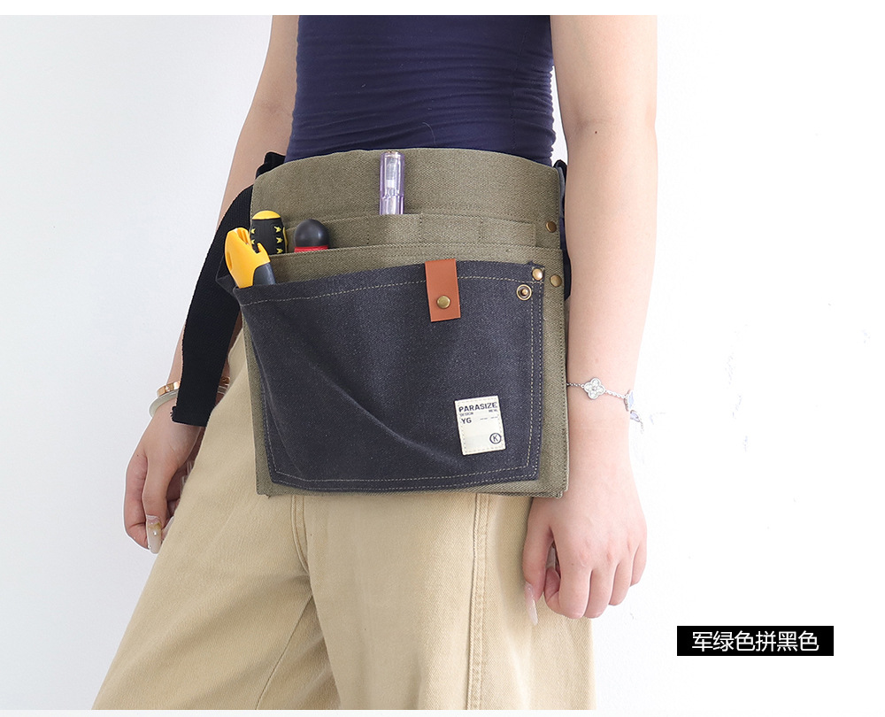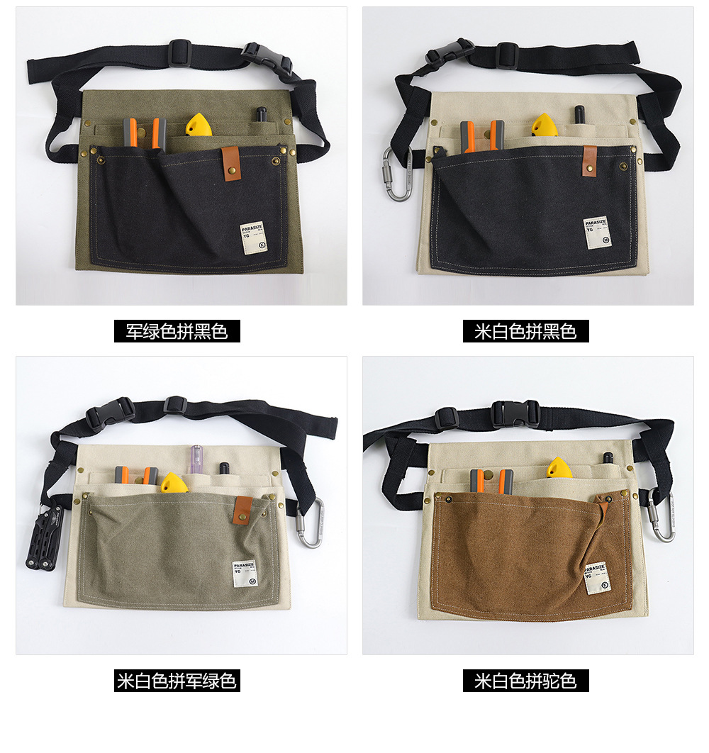 Nuevo delantal de lona gruesa transfronteriza logotipo personalizado de moda coreana empalmado de gran capacidad de lona herramientas de cintura delantal