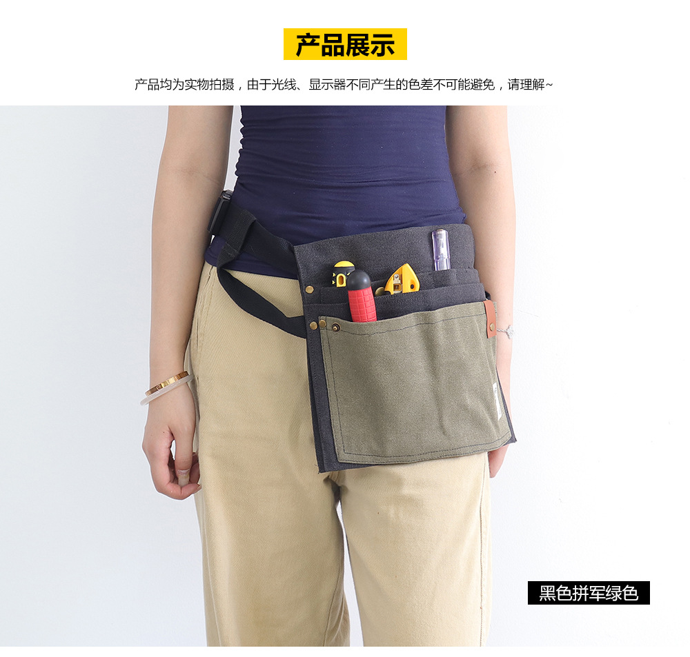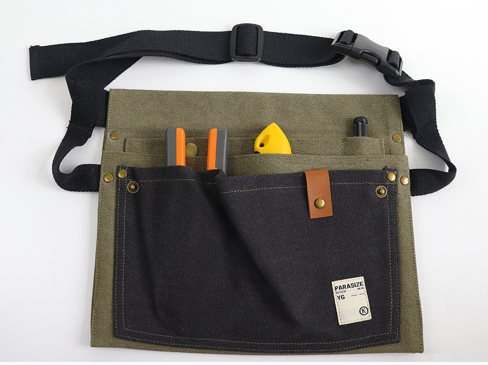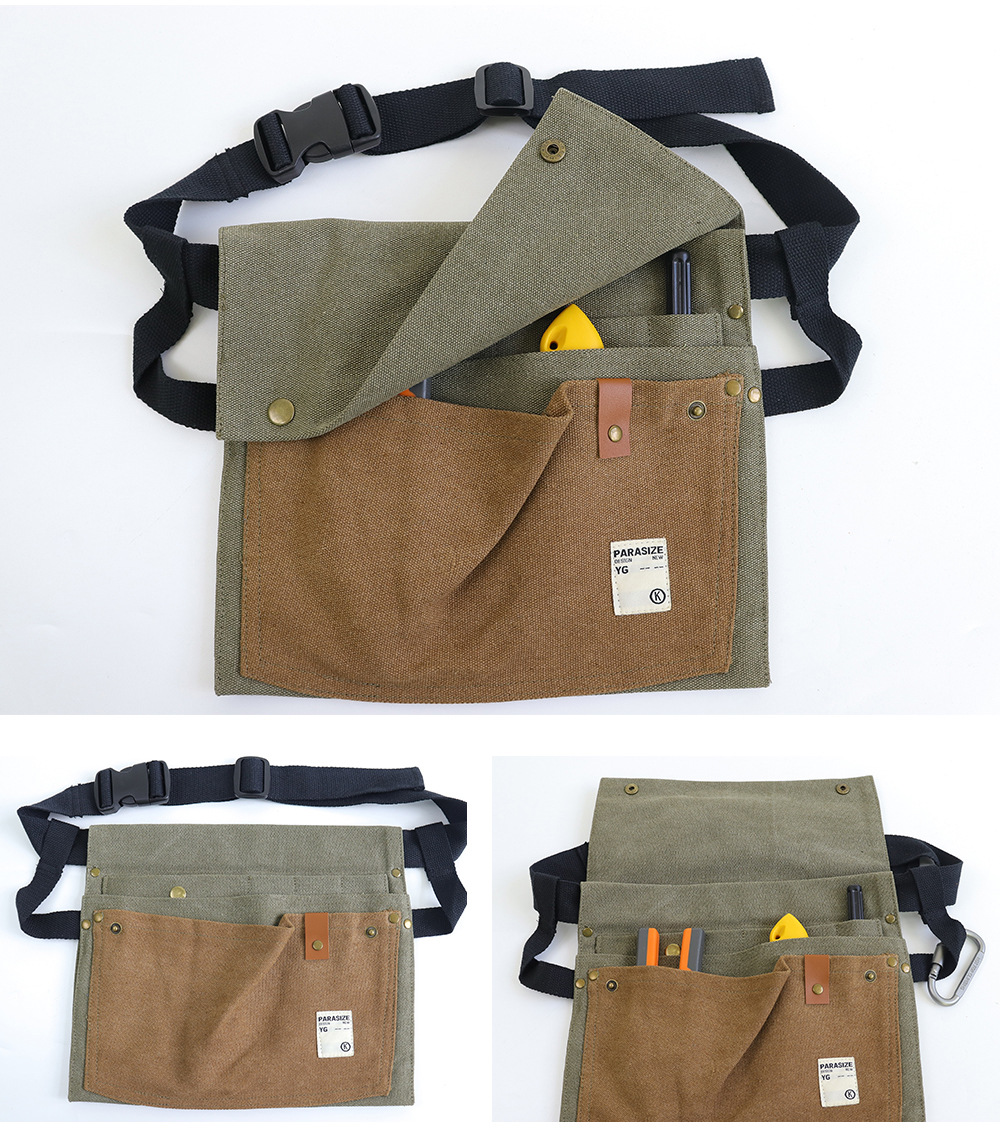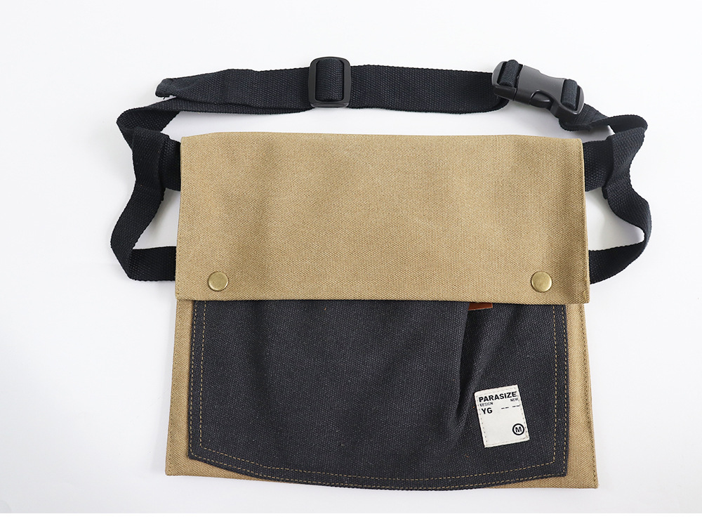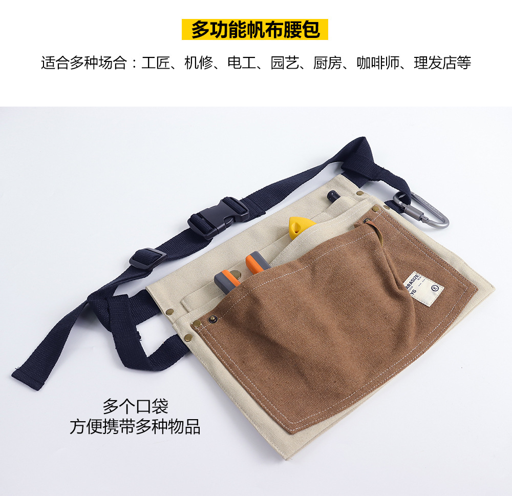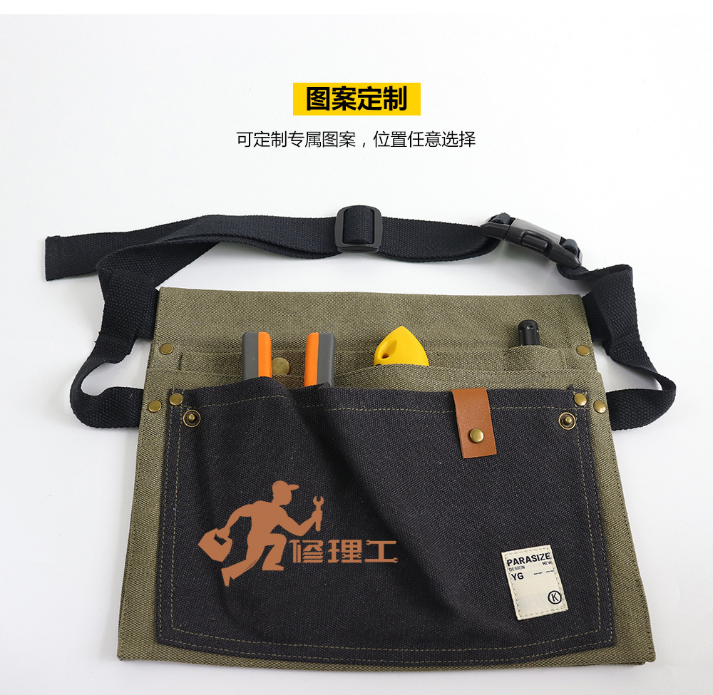 Nuevo delantal de lona gruesa transfronteriza logotipo personalizado de moda coreana empalmado de gran capacidad de lona herramientas de cintura delantal