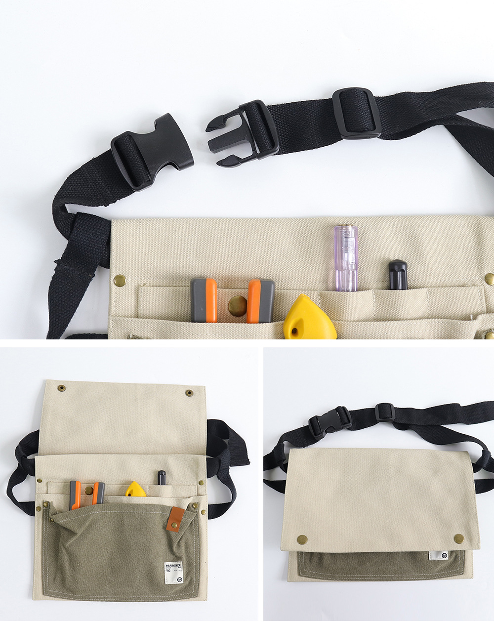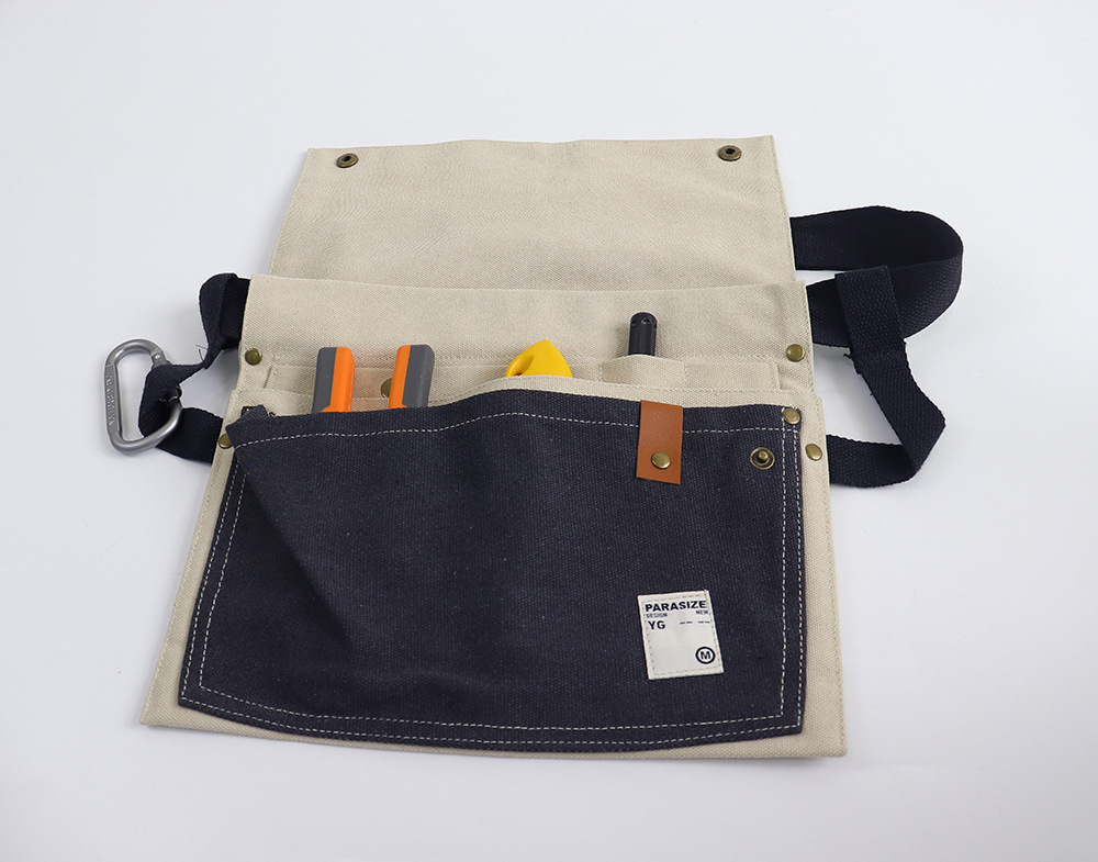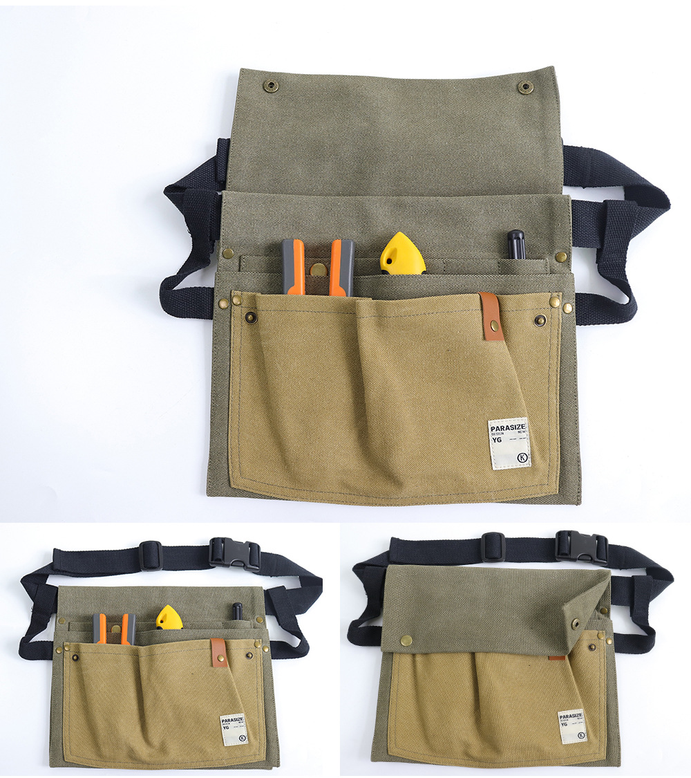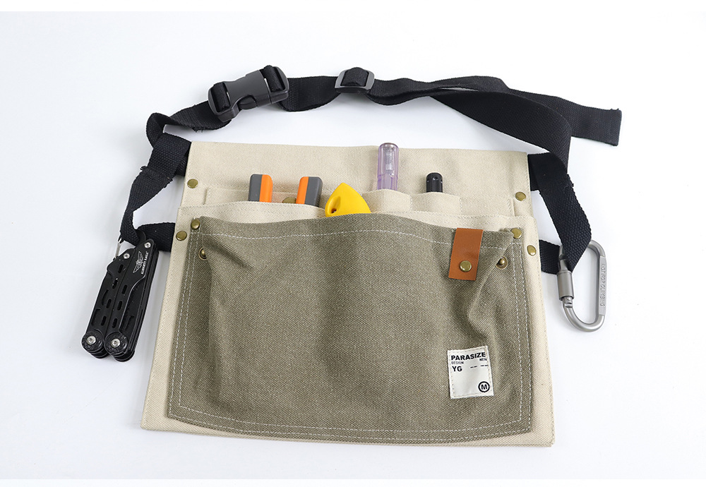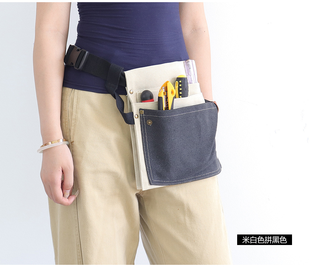 Nuevo delantal de lona gruesa transfronteriza logotipo personalizado de moda coreana empalmado de gran capacidad de lona herramientas de cintura delantal