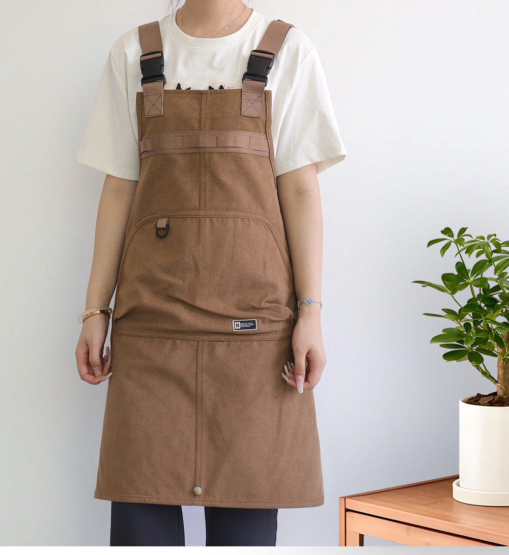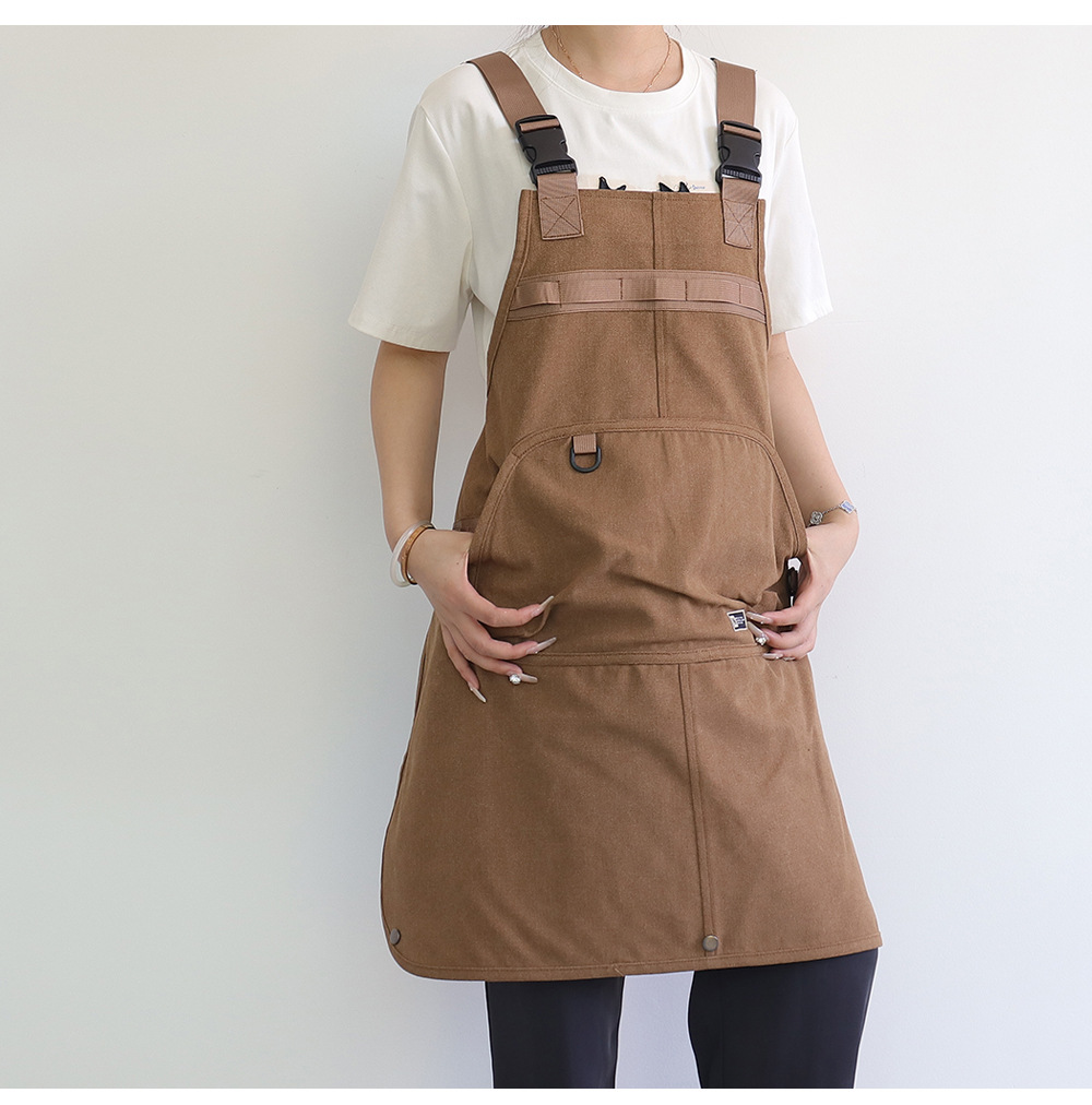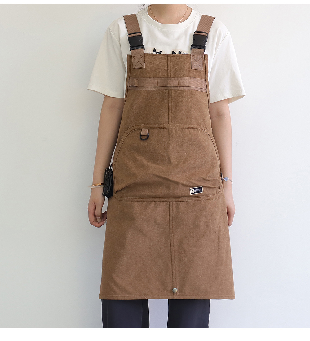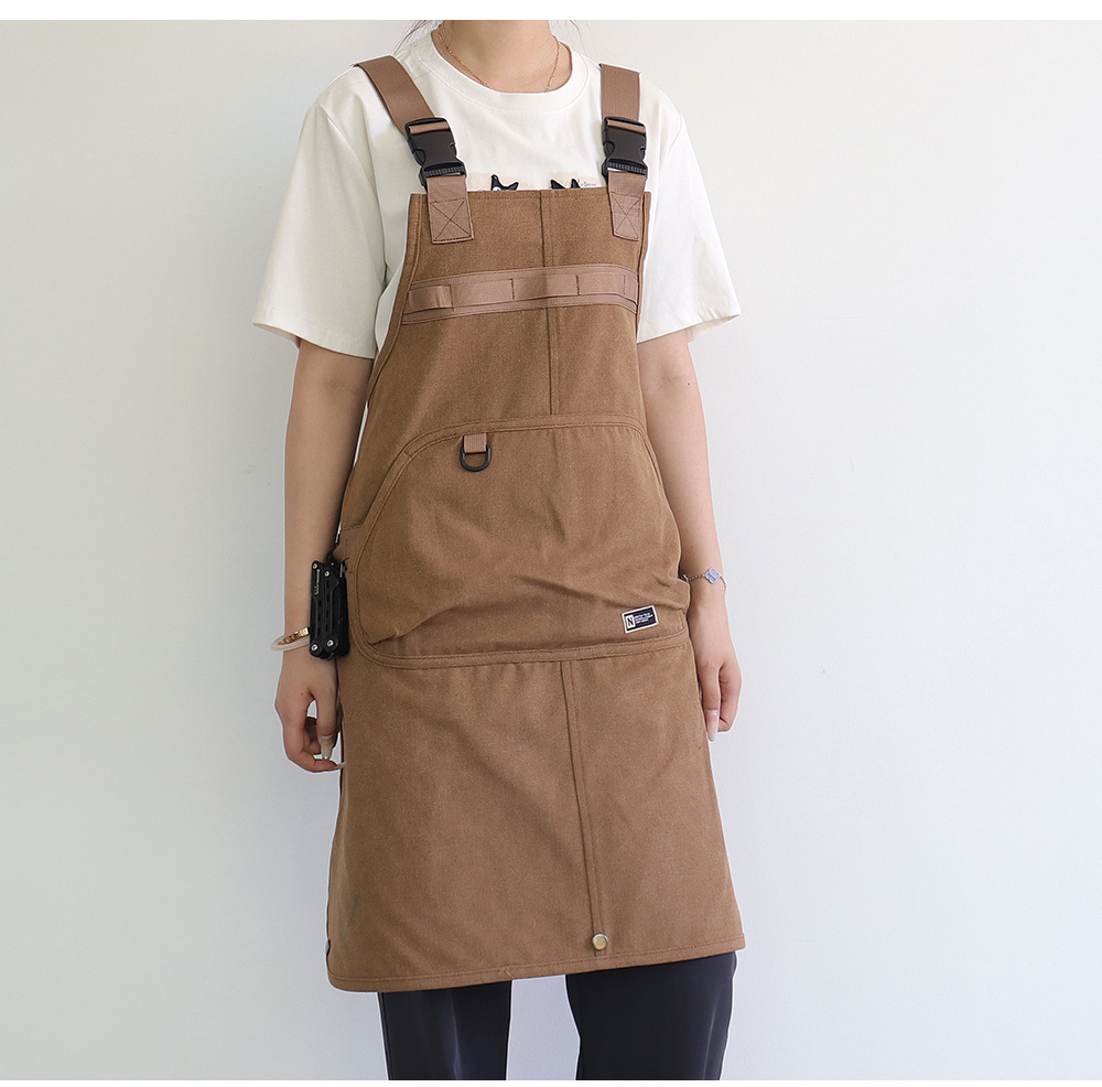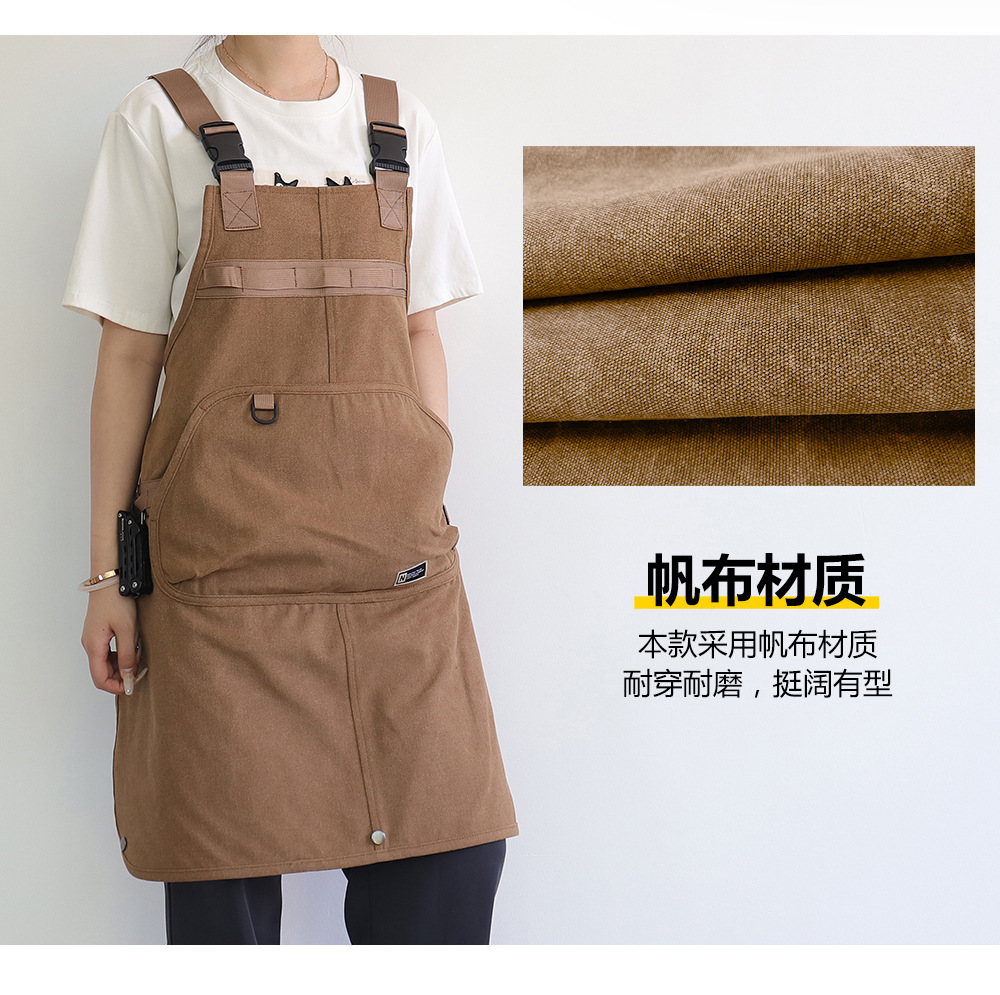 Nuevo delantal de lona gruesa transfronterizo de alto valor de bolsillo herramientas delantal japonés logotipo personalizado vestido de corte de pelo