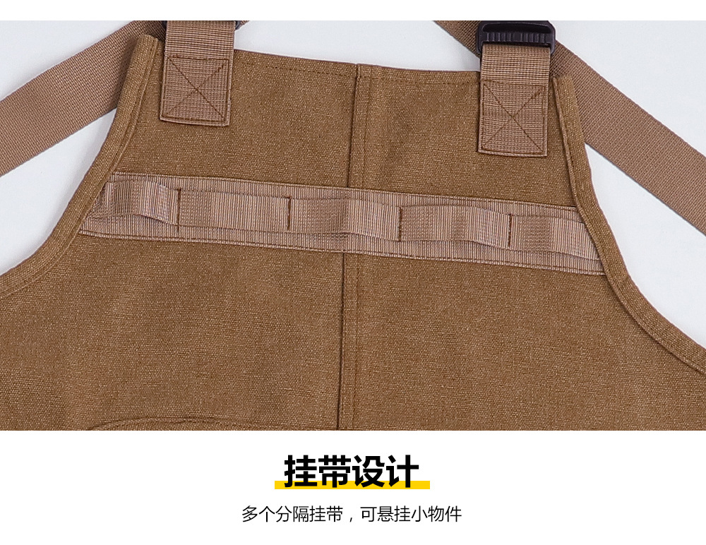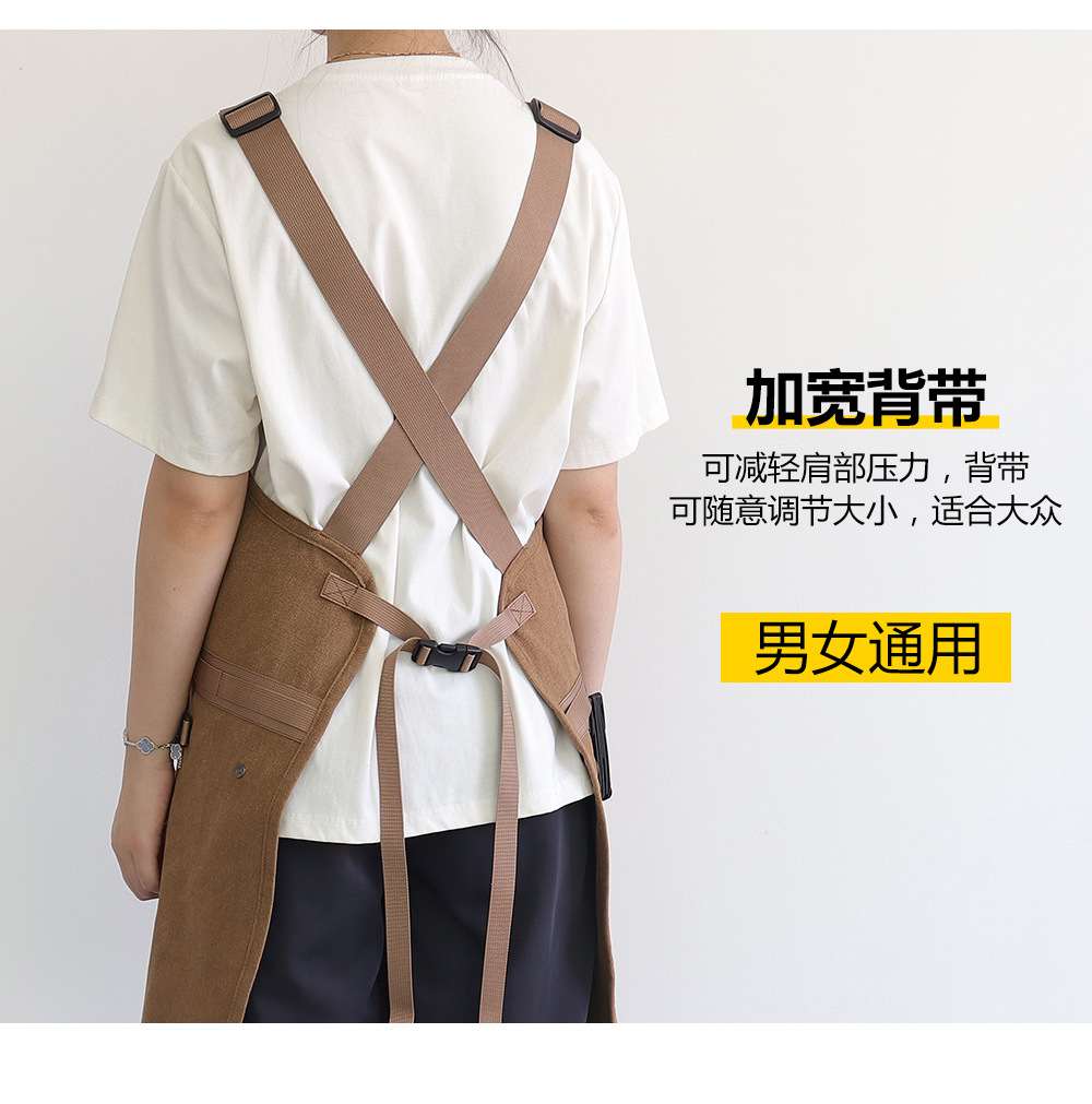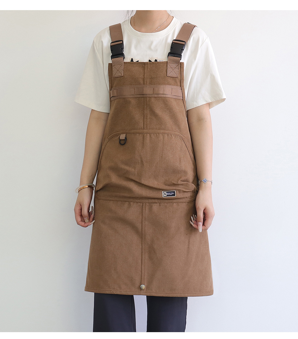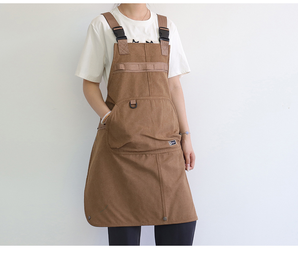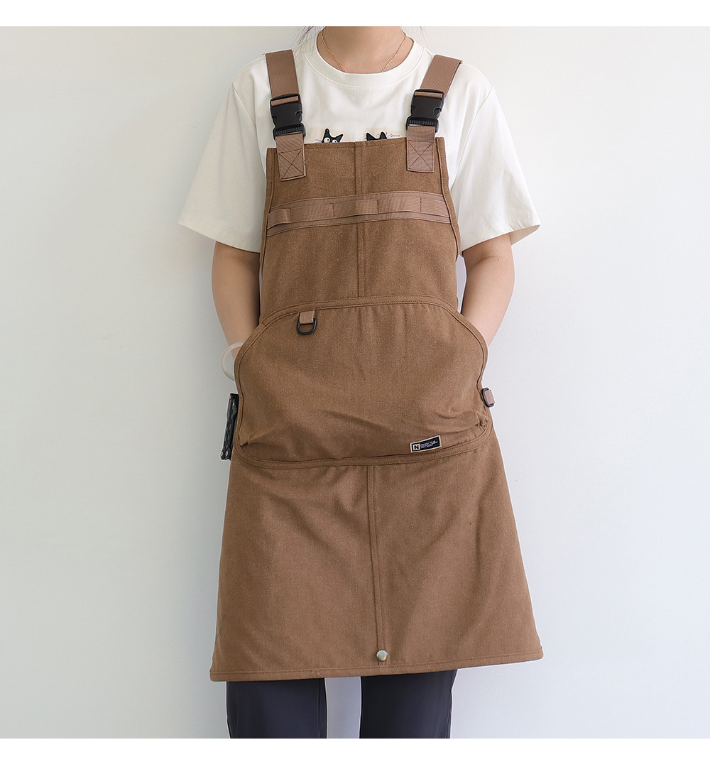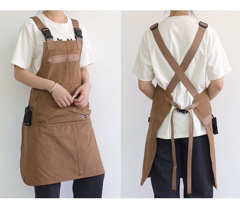 Nuevo delantal de lona gruesa transfronterizo de alto valor de bolsillo herramientas delantal japonés logotipo personalizado vestido de corte de pelo