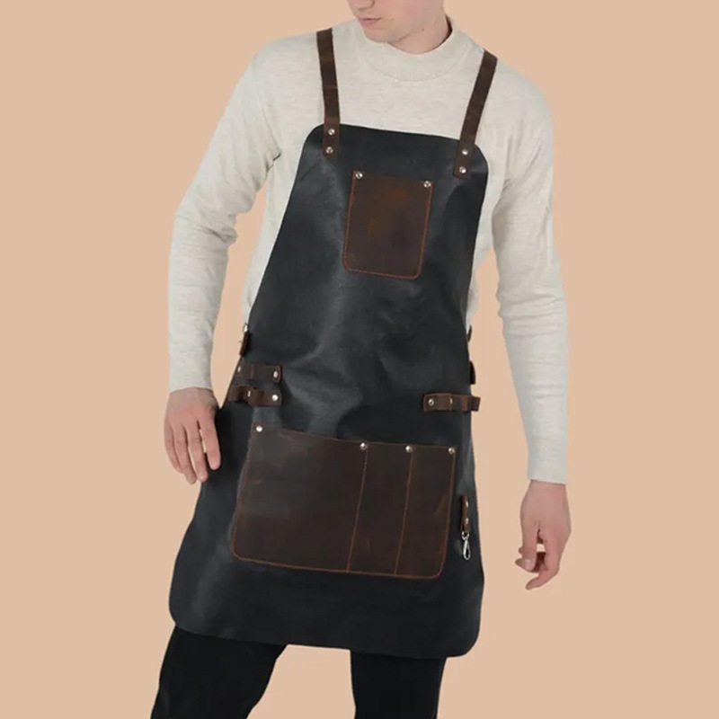 Transfronterizo Amazon pu delantal impermeable a prueba de aceite barbacoa al aire libre de bolsillo delantal de piel ropa de trabajo fabricantes al por mayor