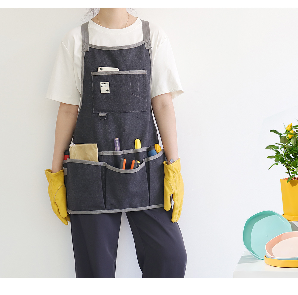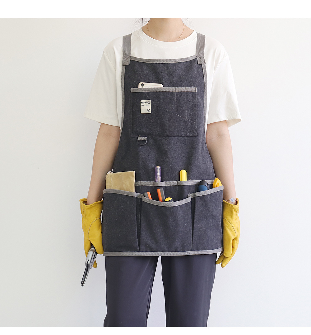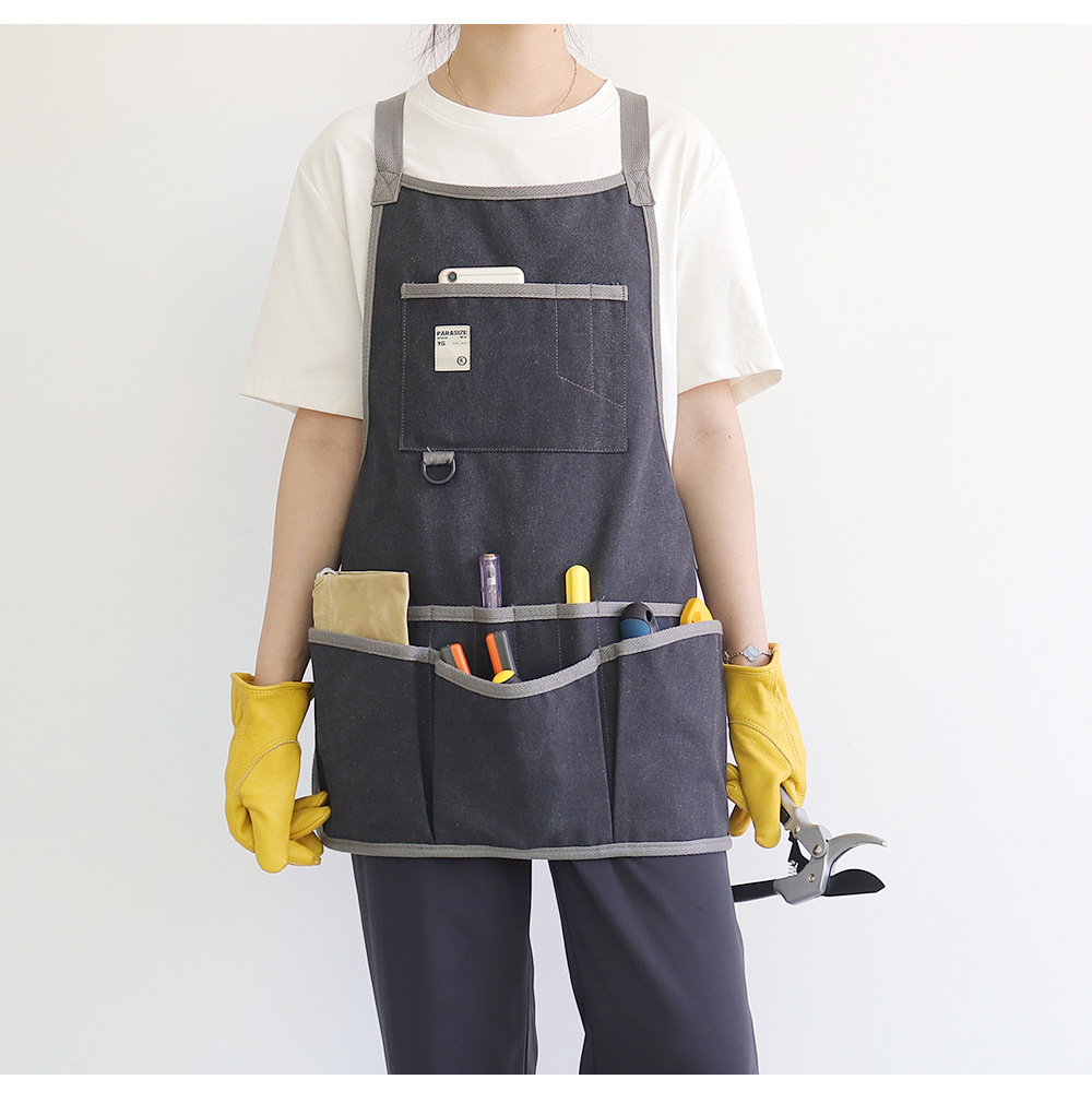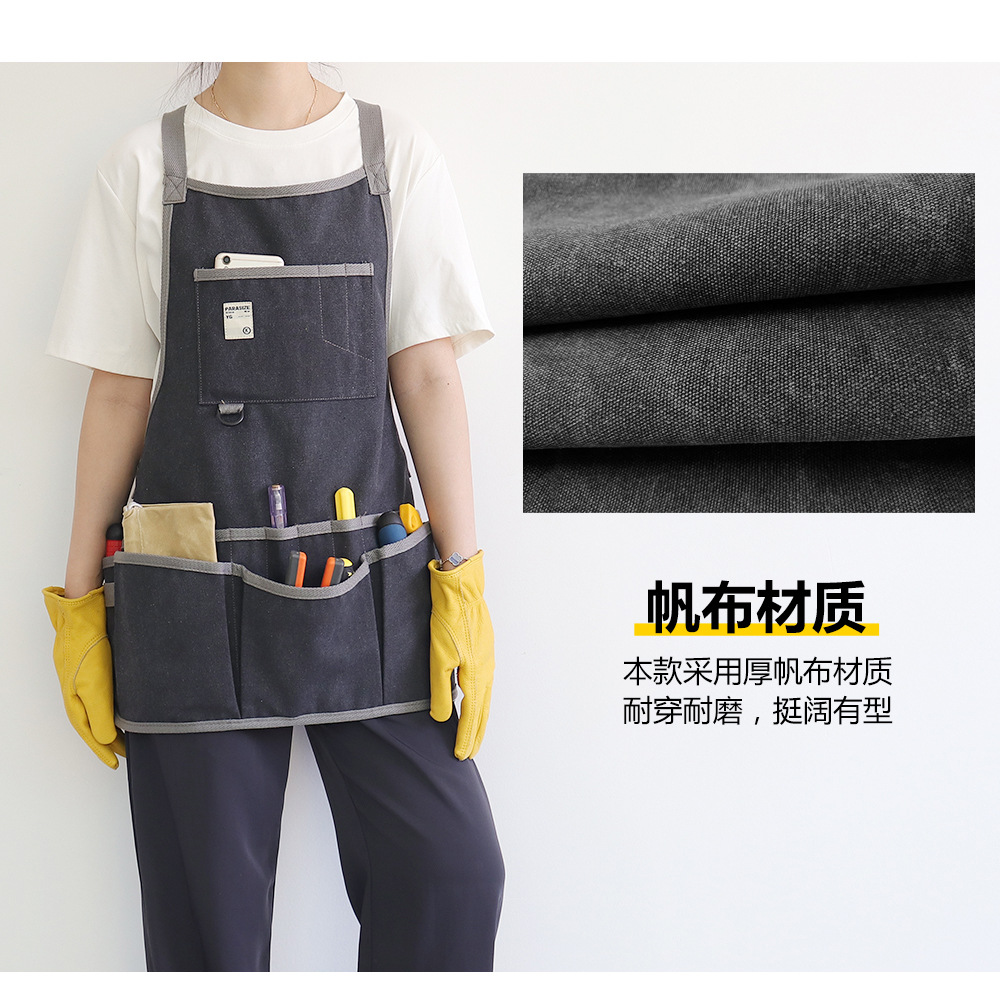 Nuevo delantal de lona gruesa transfronteriza logotipo personalizado floral jardinería ropa de trabajo electricista carpintería herramientas de almacenamiento delantal