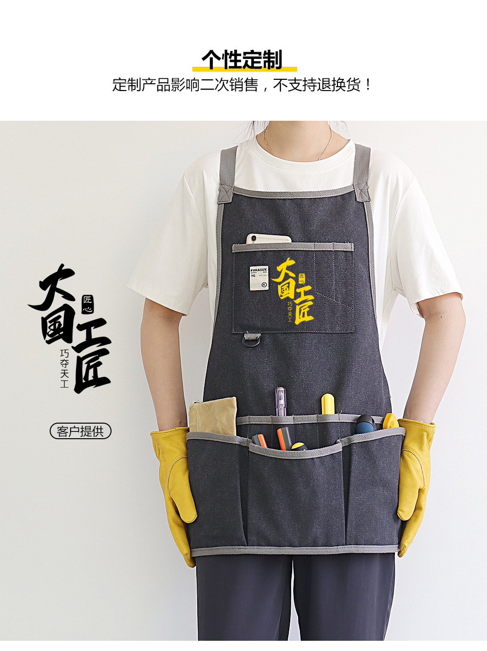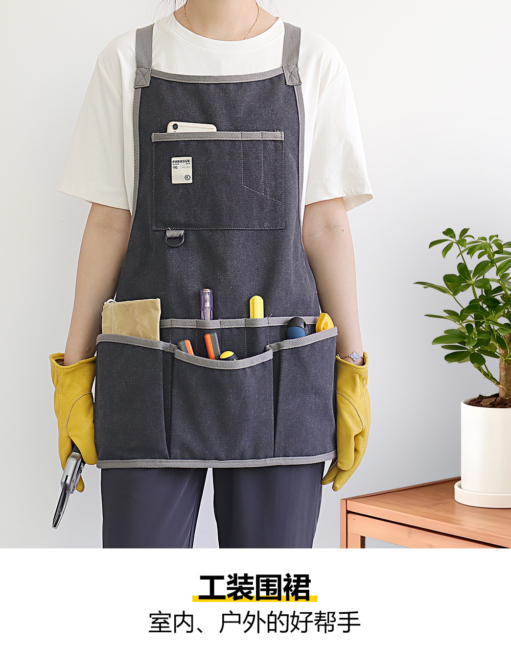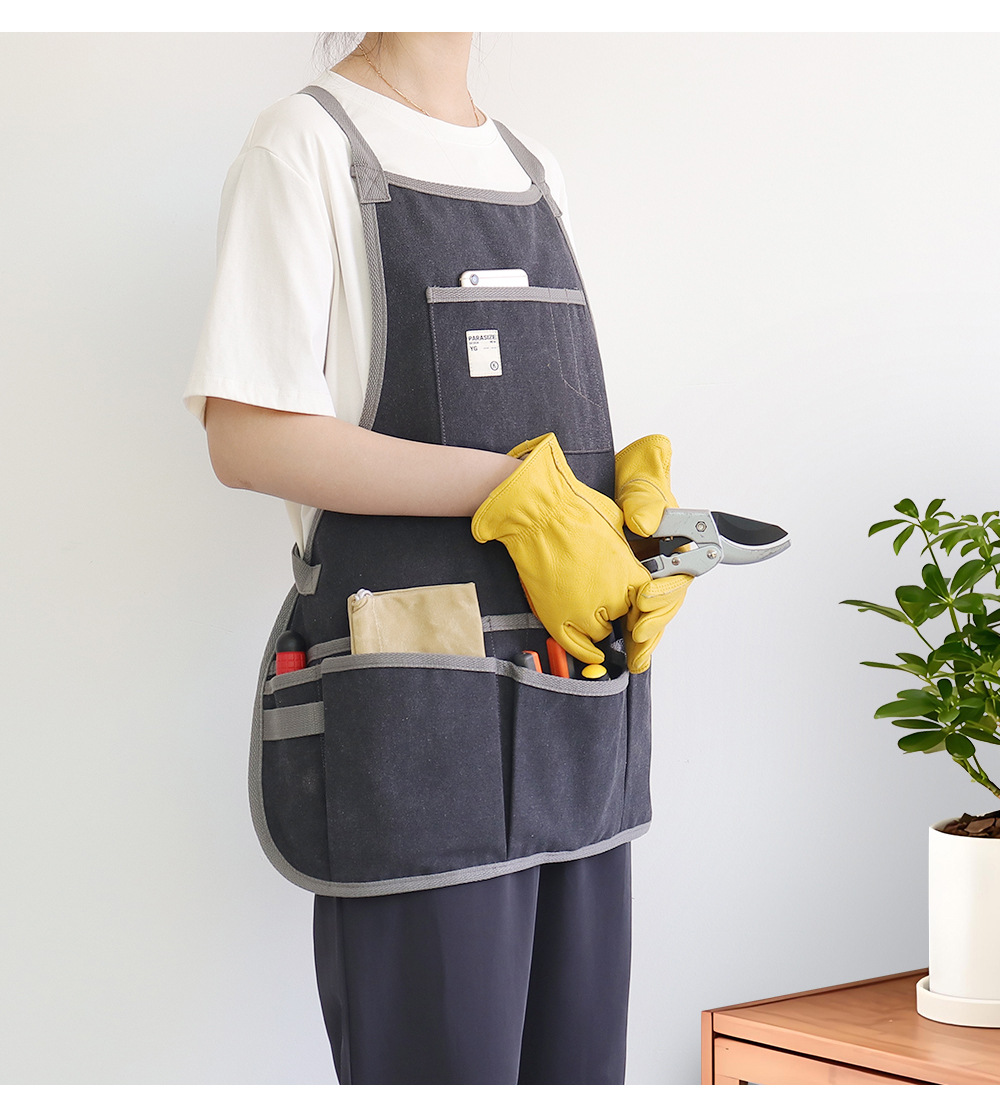 Nuevo delantal de lona gruesa transfronteriza logotipo personalizado floral jardinería ropa de trabajo electricista carpintería herramientas de almacenamiento delantal