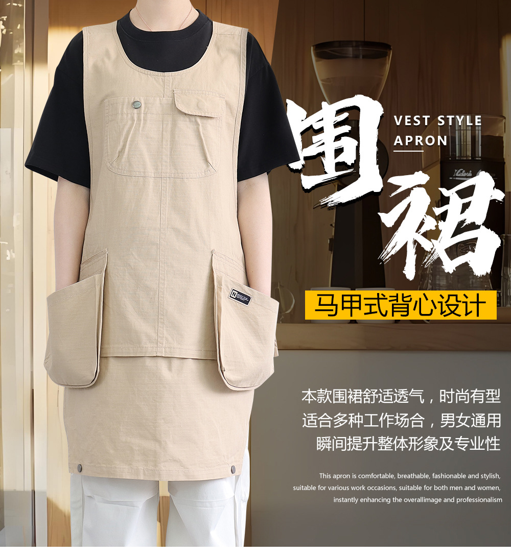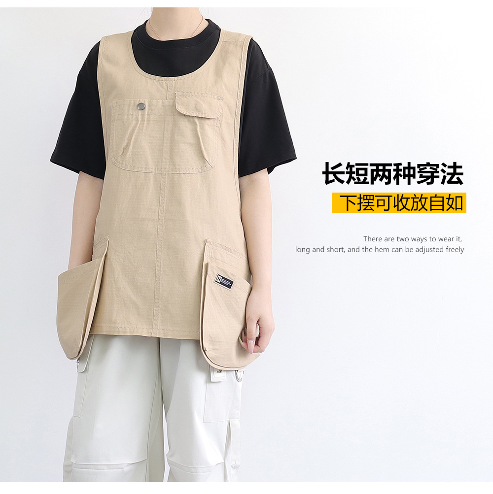 Nuevo delantal de bolsillo transfronterizo estilo coreano chaleco fresco longitud corta se puede usar abrigo abrigo de trabajo delantal de corte de pelo