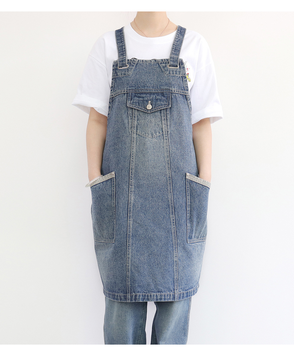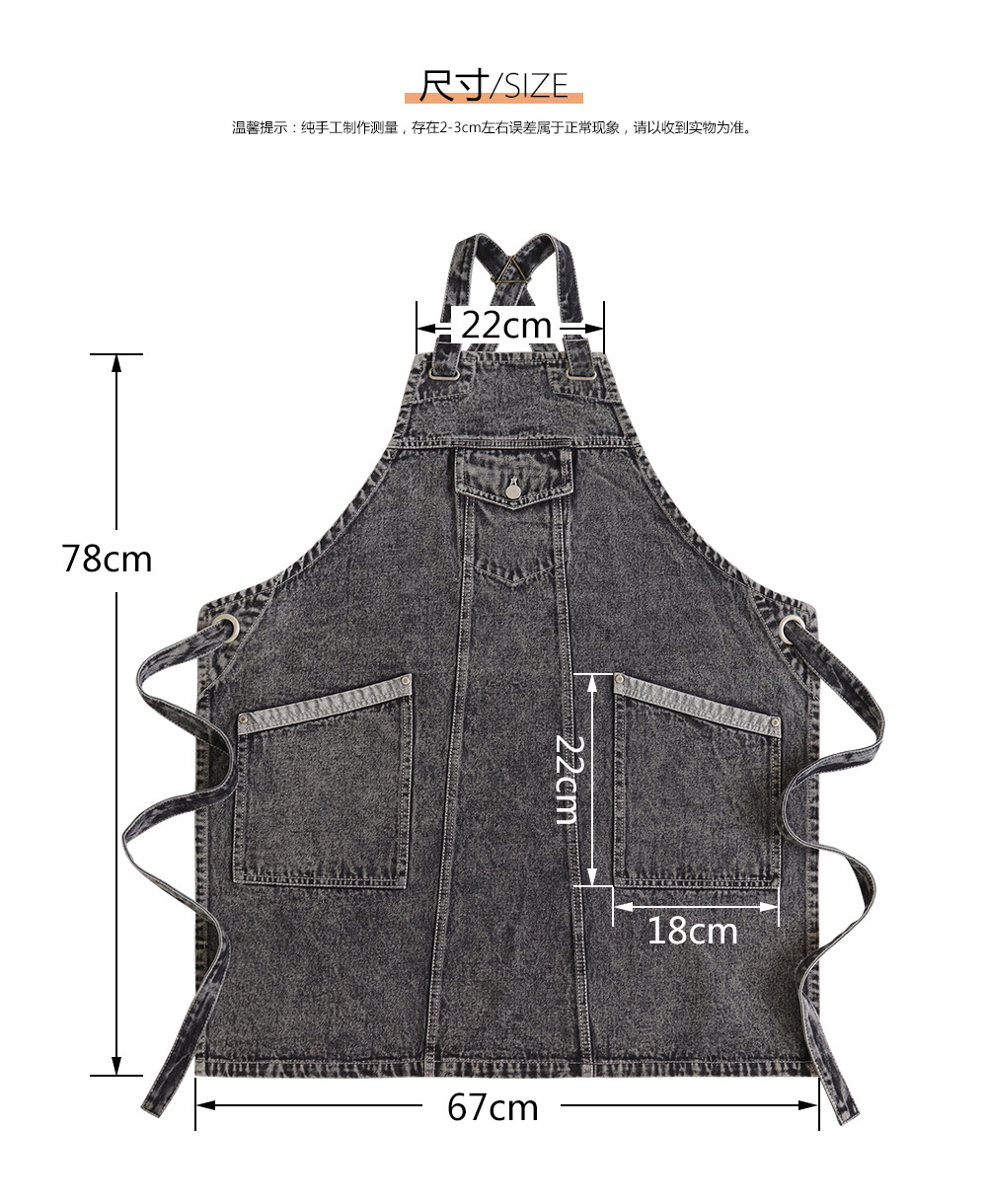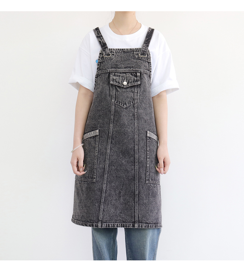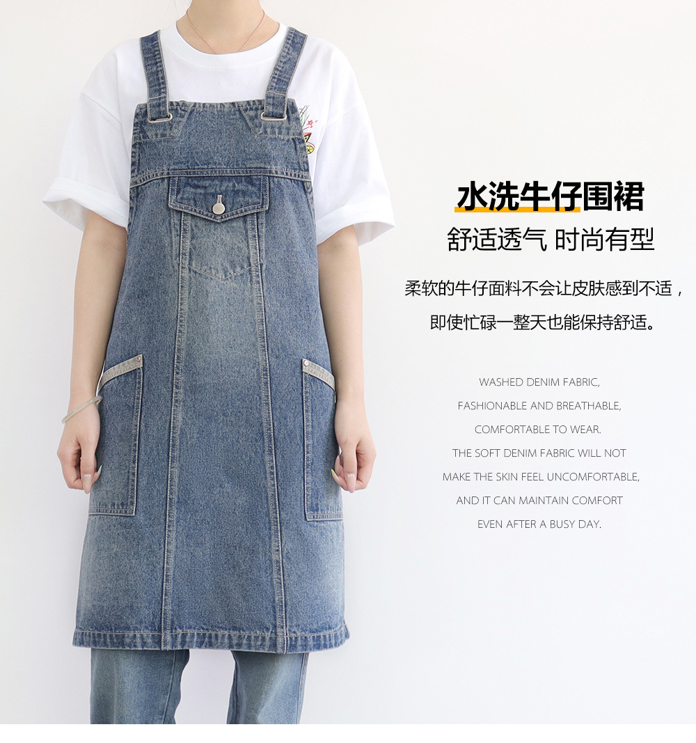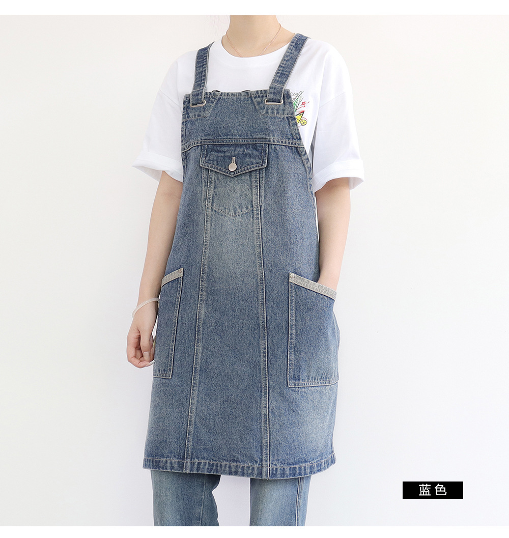 Nuevo delantal de moda coreano transfronterizo pintura de arte barbero ropa de trabajo lavado con agua delantal vaquero ambos lados