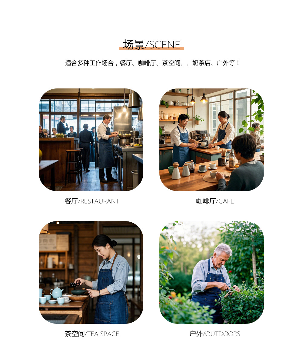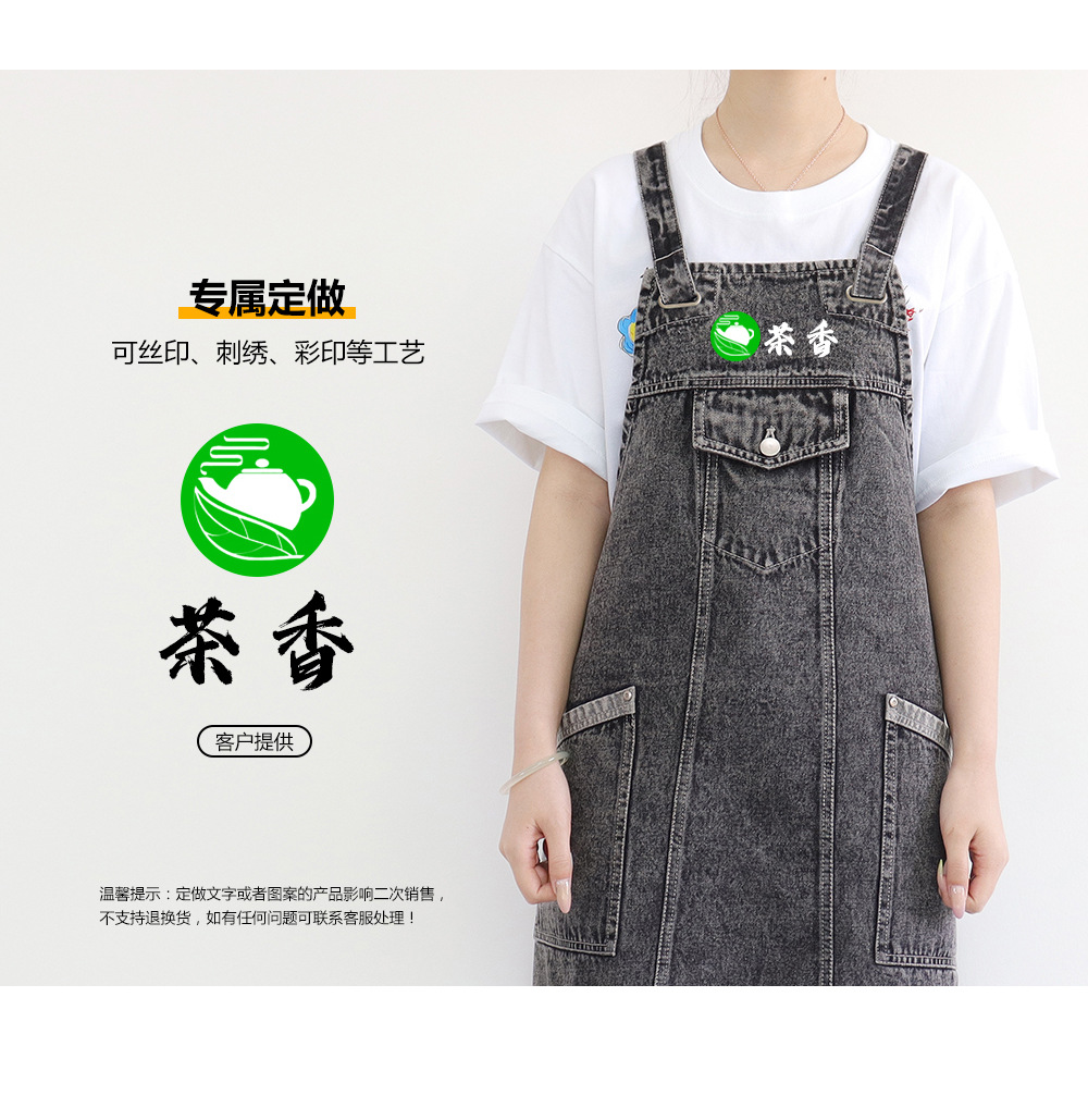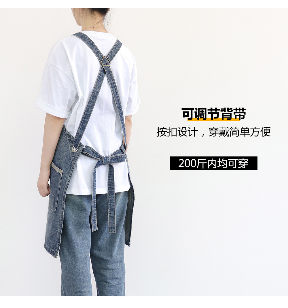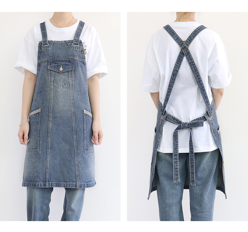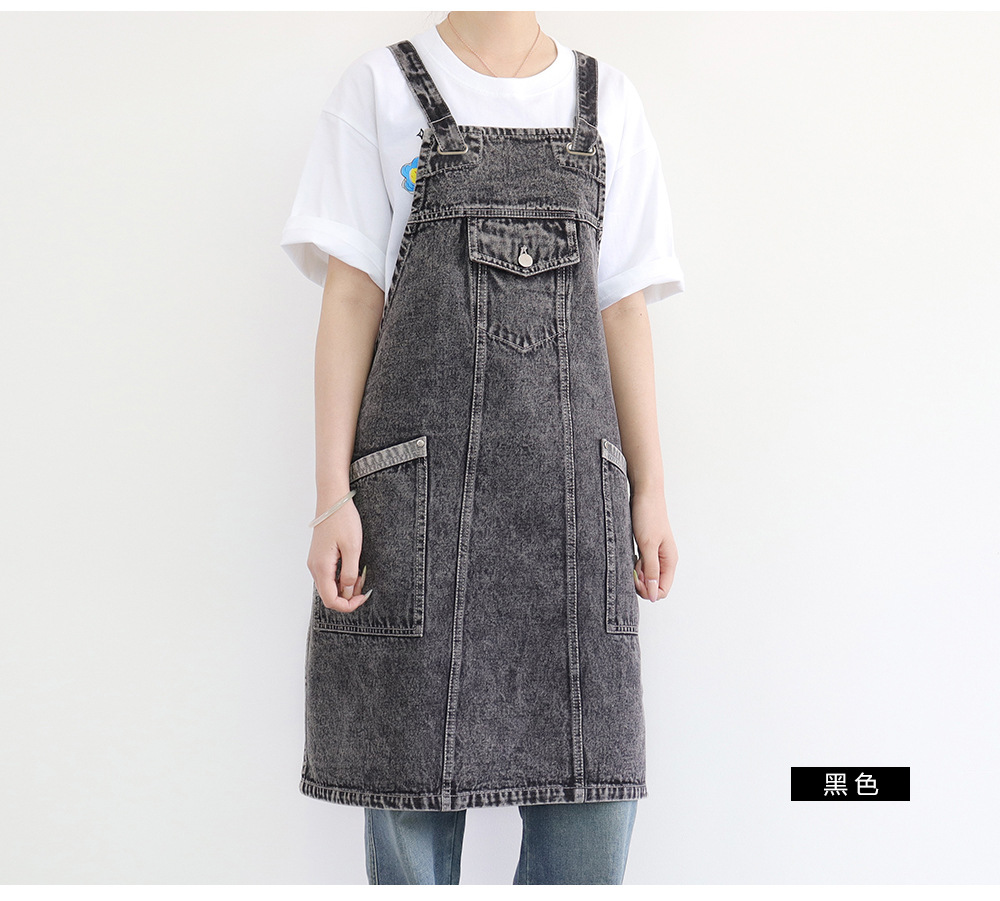 Nuevo delantal de moda coreano transfronterizo pintura de arte barbero ropa de trabajo lavado con agua delantal vaquero ambos lados