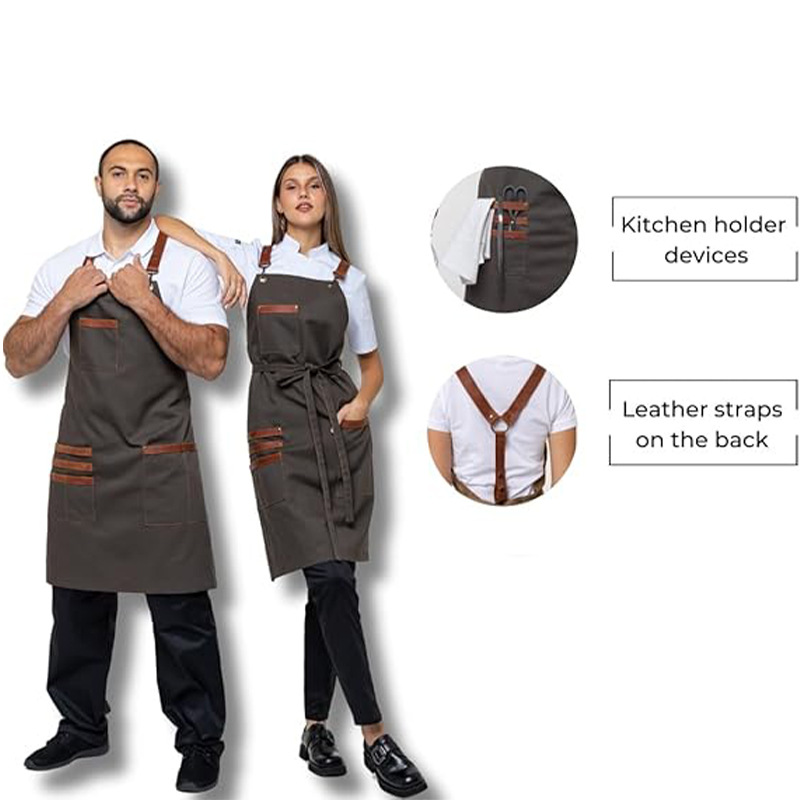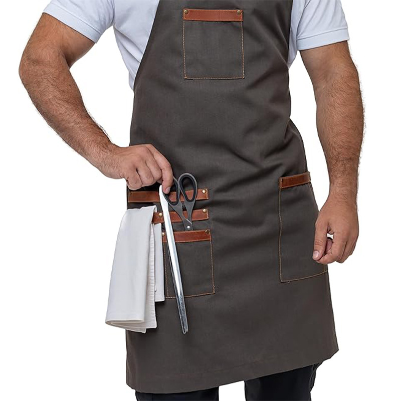 Nuevo delantal de lona de moda coreana transfronteriza logotipo personalizado de bolsillo camarero ropa de trabajo delantal de corte de pelo