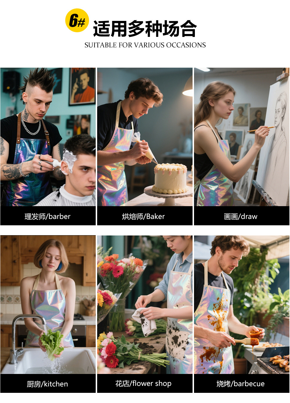 Transfronterizo Amazon nuevo delantal PU de color fantasma impermeable pintura de arte barbero ropa de trabajo cocina delantal doméstico