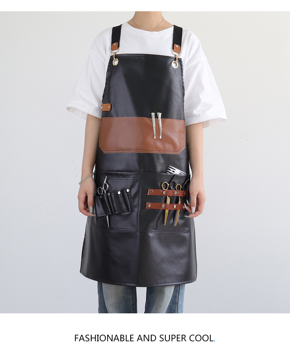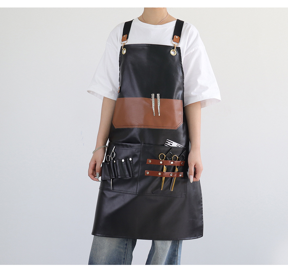 Transfronterizo Amazon nuevo delantal de PU cuero retro celebridad de Internet peluquero ropa de trabajo herramienta delantal fábrica de origen