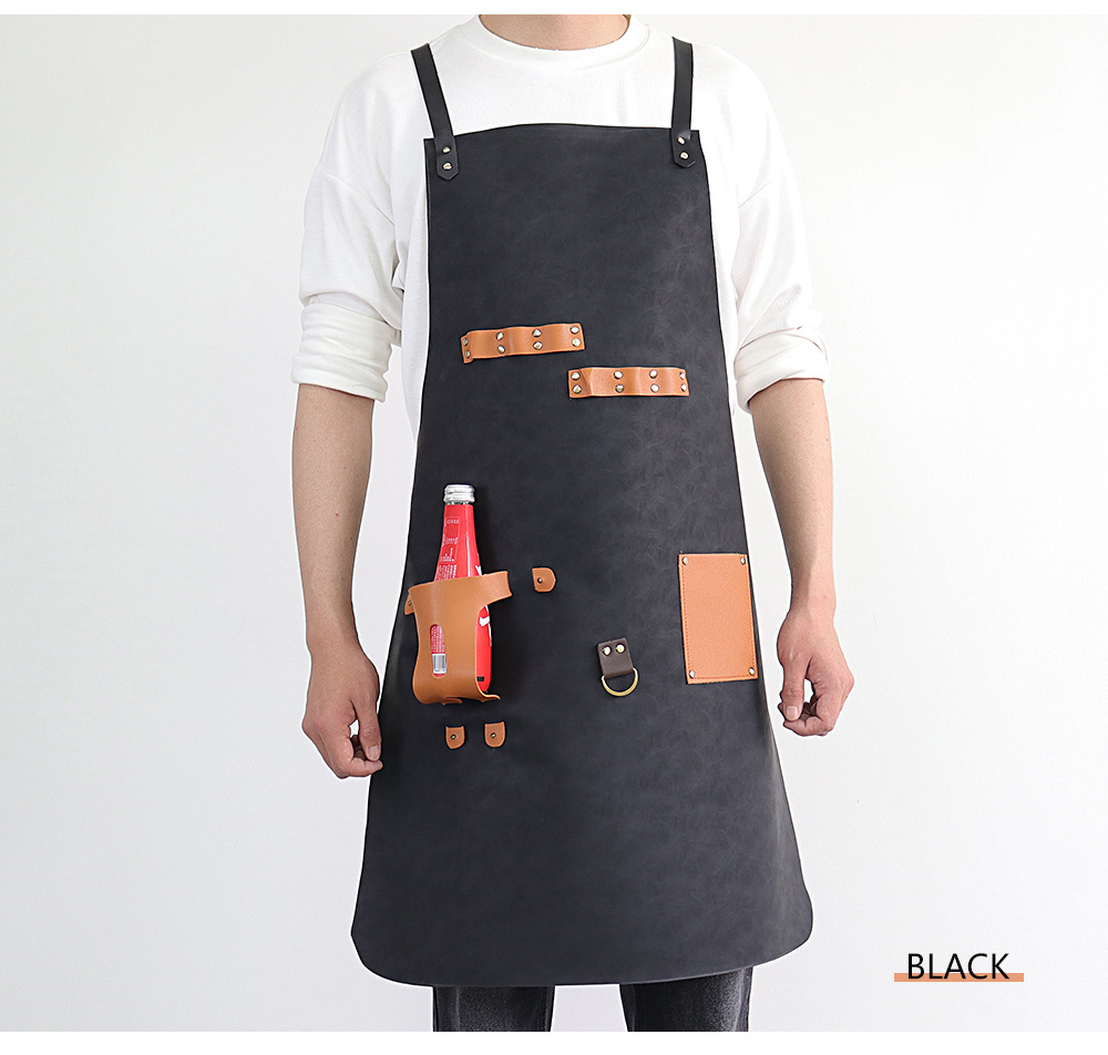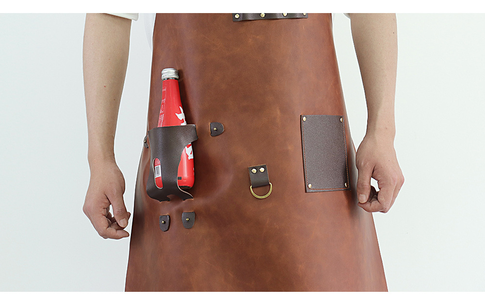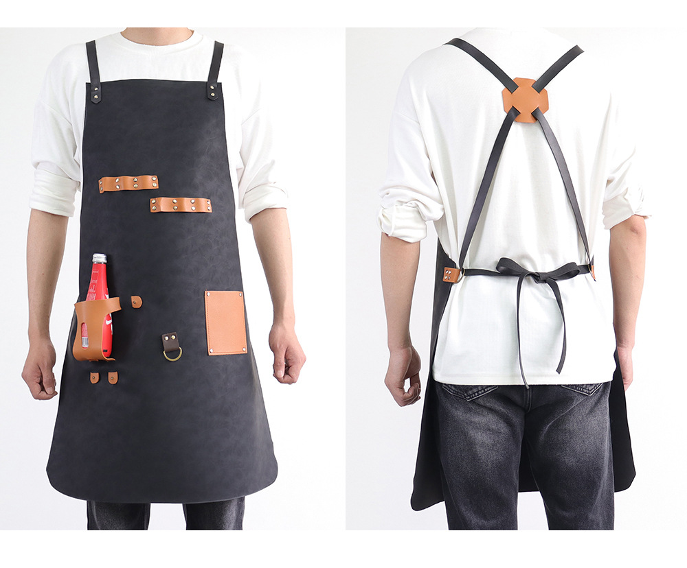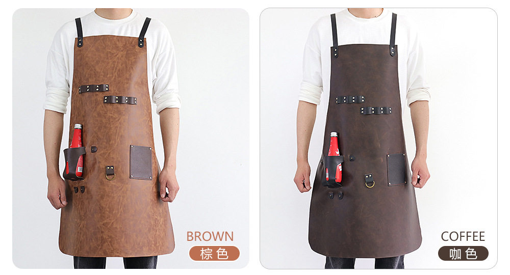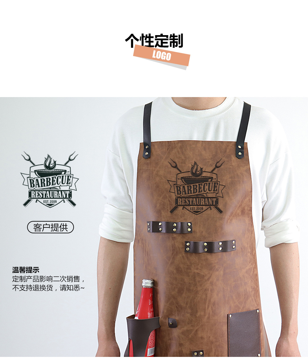 Delantal de piel de PU de Amazon transfronterizo logotipo de serigrafía comercio exterior estilo caliente botella de cerveza bar mono delantal al por mayor