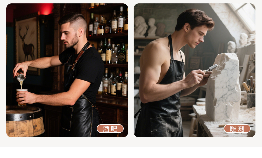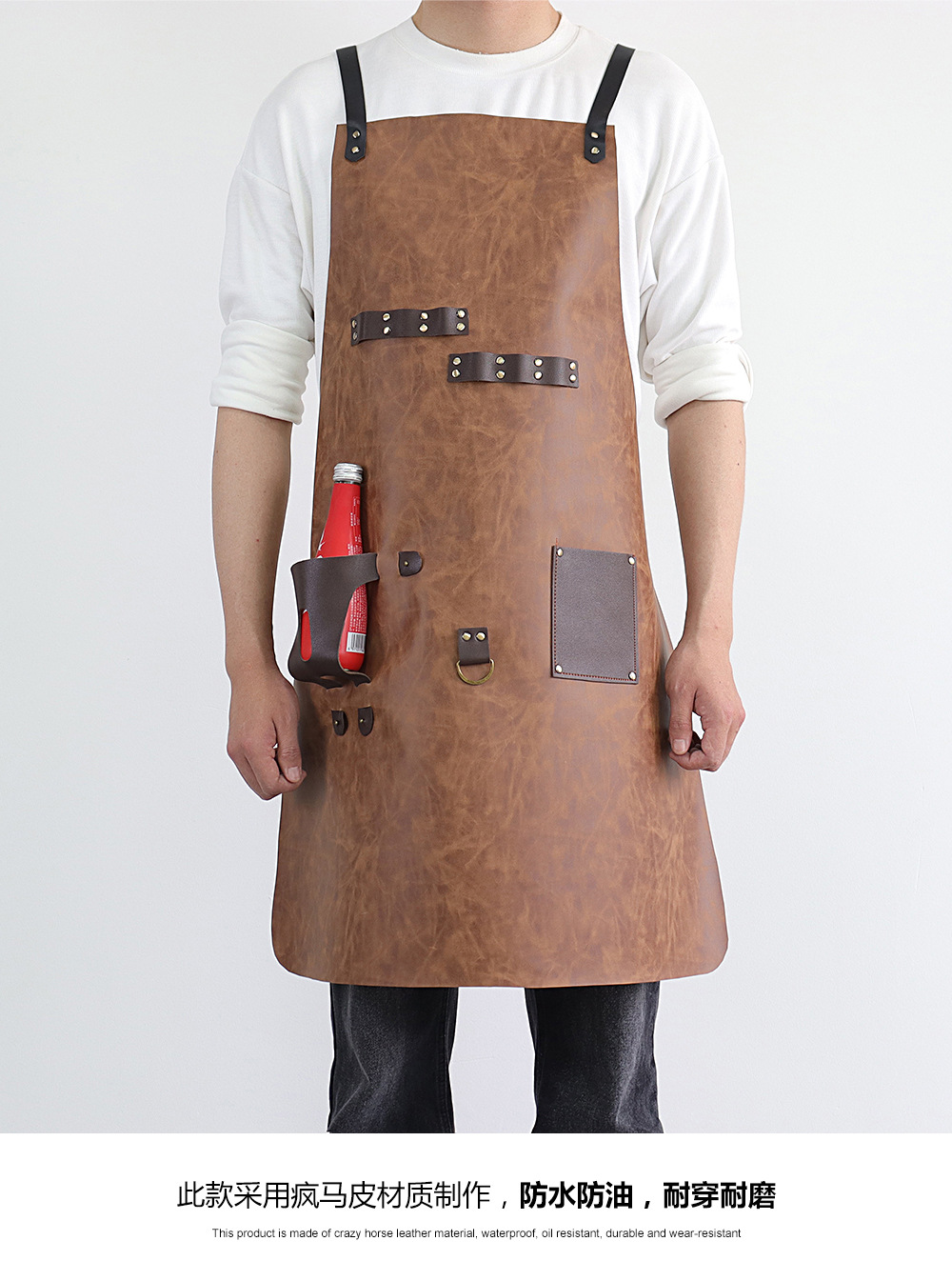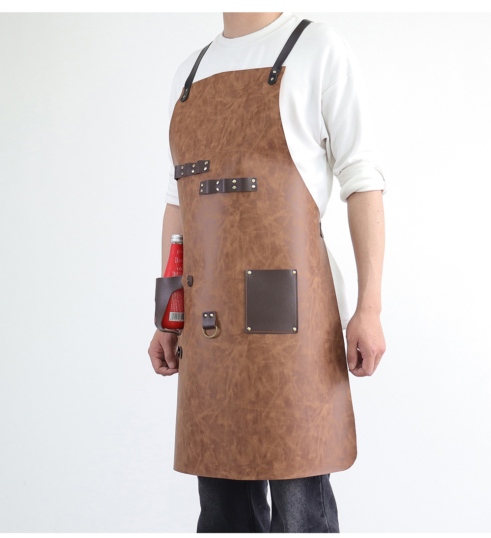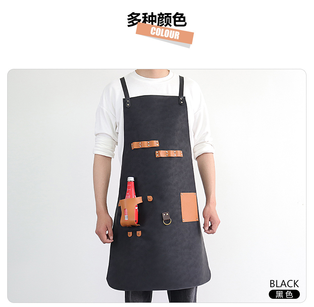 Delantal de piel de PU de Amazon transfronterizo logotipo de serigrafía comercio exterior estilo caliente botella de cerveza bar mono delantal al por mayor