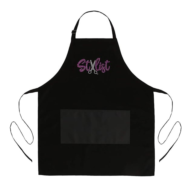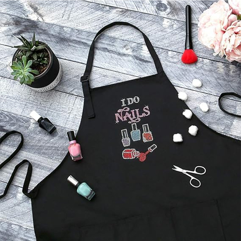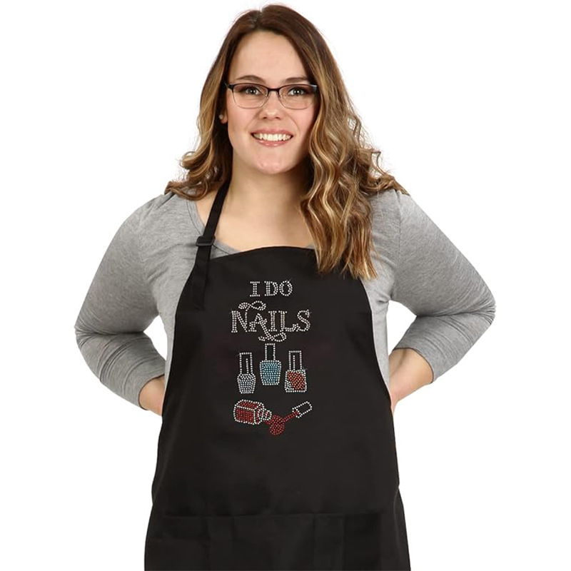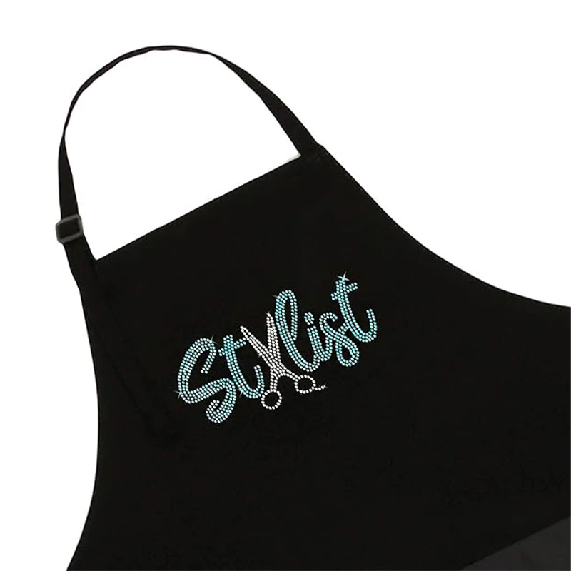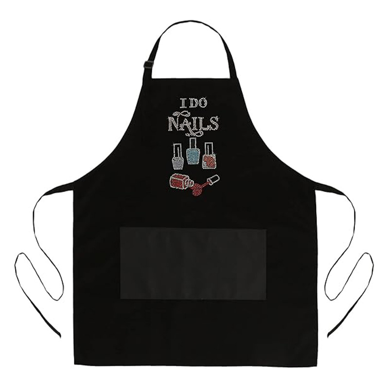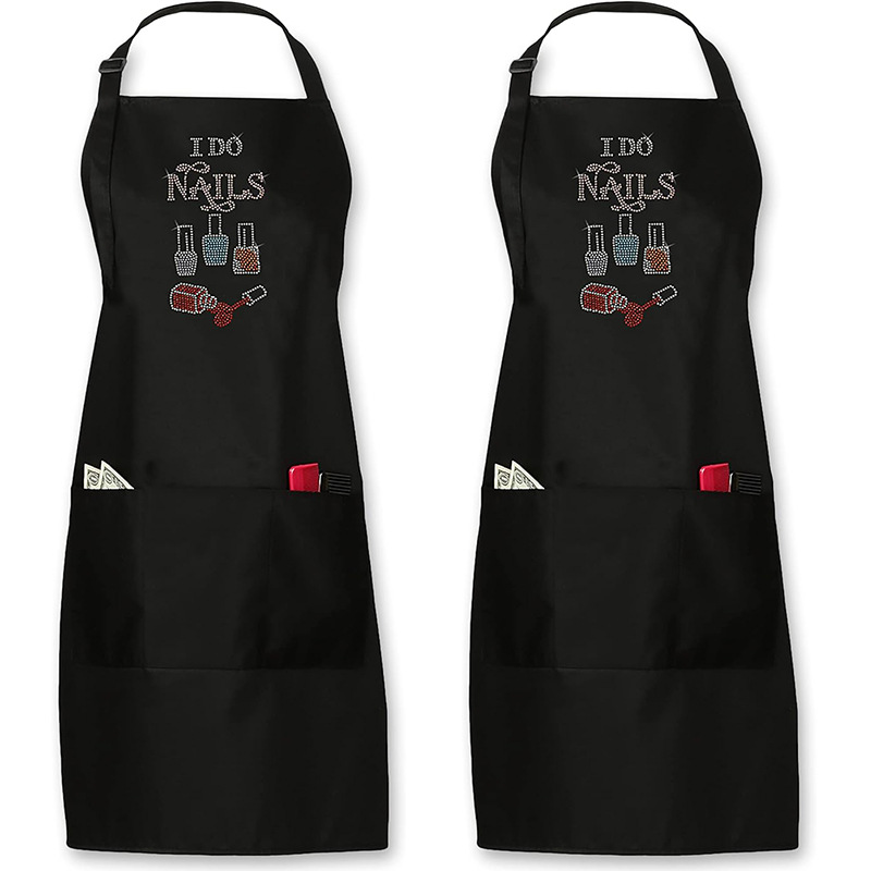 Delantal de poliéster de Amazon transfronterizo logotipo personalizado parche de diamante caliente manicura peluquero ropa de trabajo delantal al por mayor