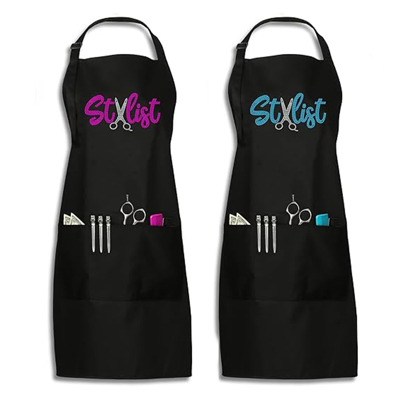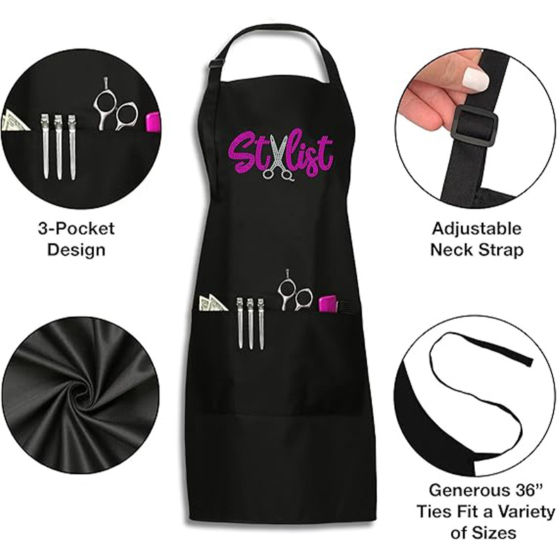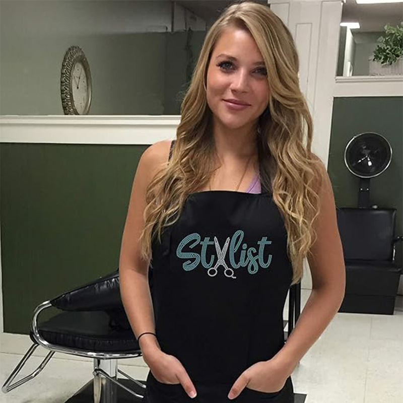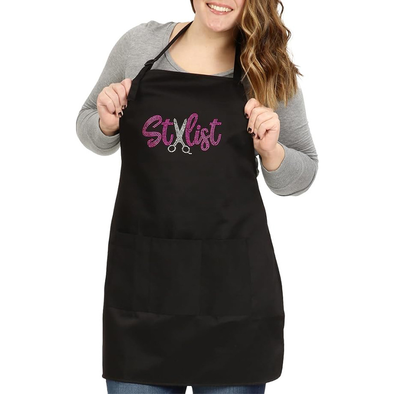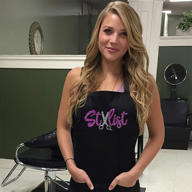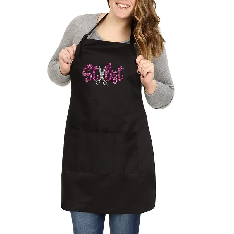 Delantal de poliéster de Amazon transfronterizo logotipo personalizado parche de diamante caliente manicura peluquero ropa de trabajo delantal al por mayor