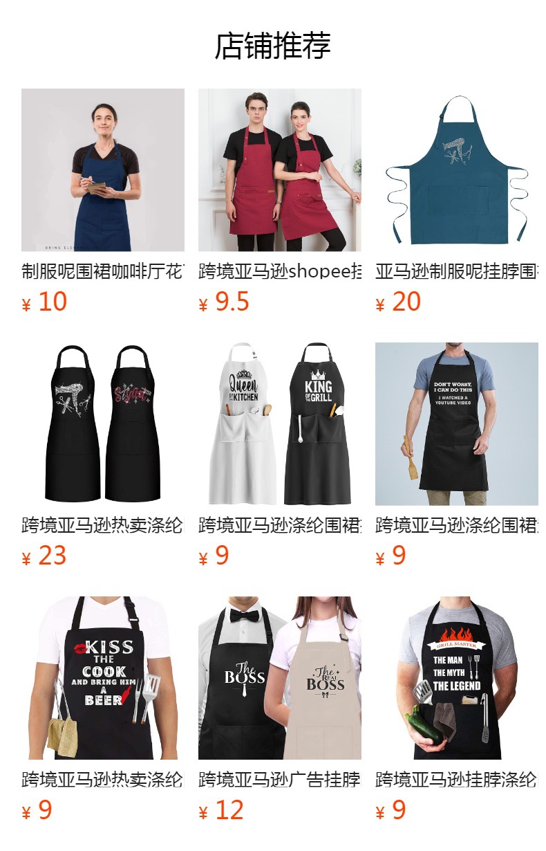 Amazon crossover exclusivamente para manicura delantal logotipo personalizado impresión publicitaria moda catering cocina hogar ropa de trabajo