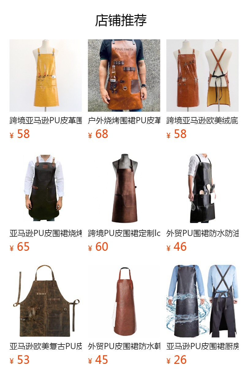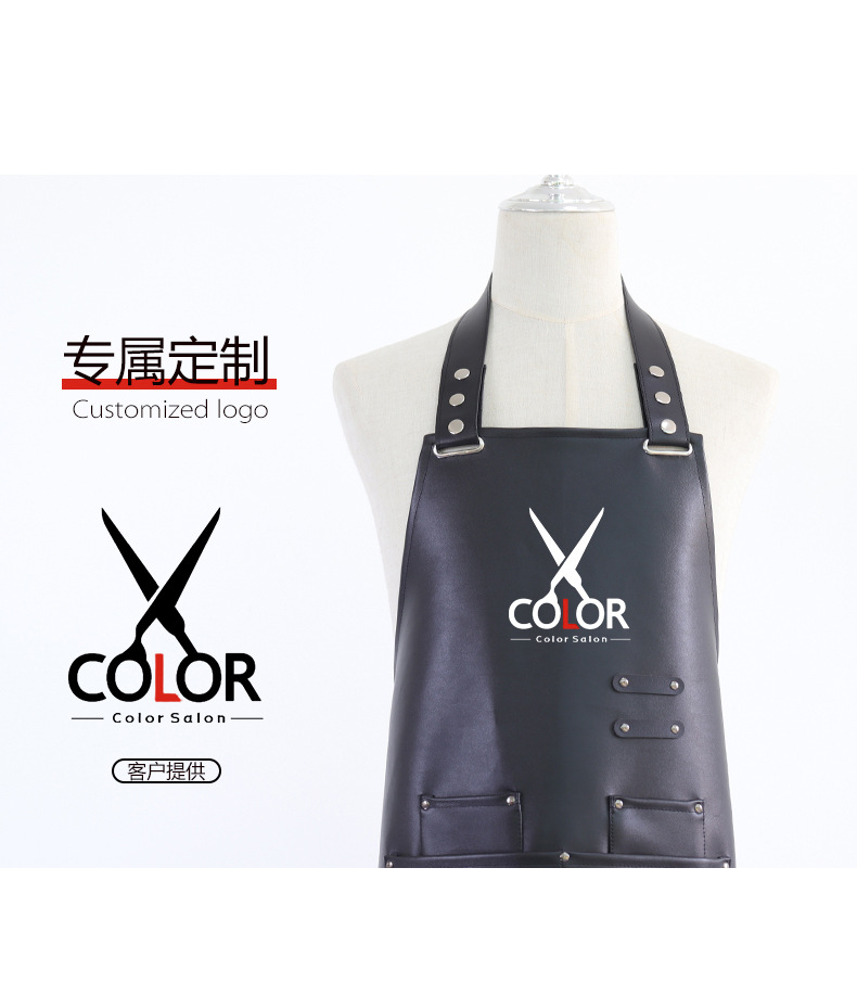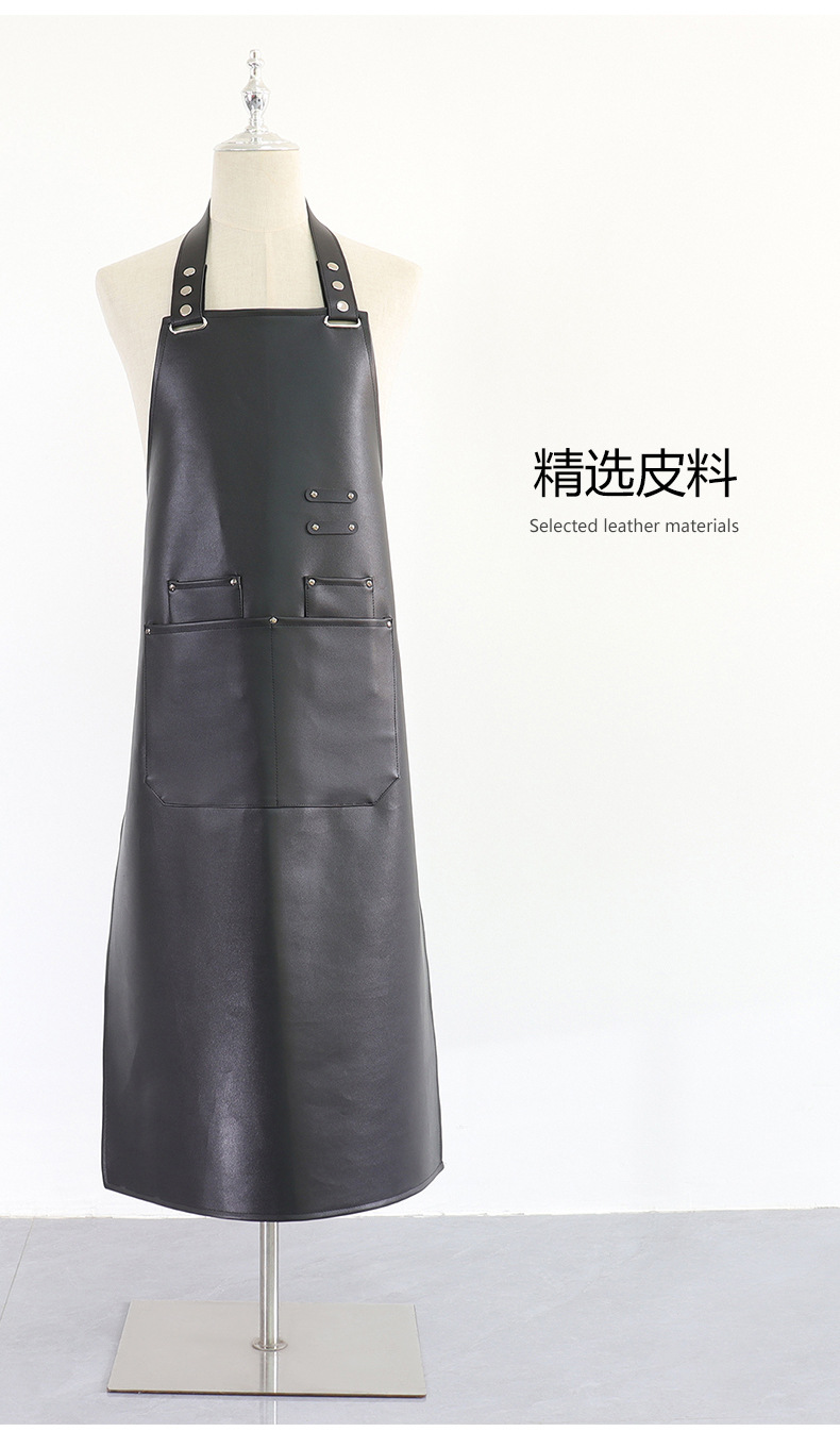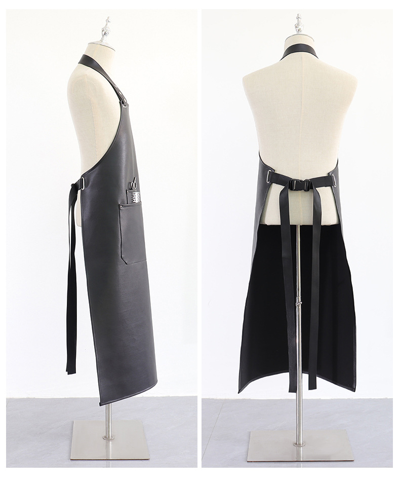 Amazon PU Delantal de cuero logotipo personalizado para catering, impermeable y a prueba de aceite, ropa de trabajo de cintura de cuero acuático de cocina