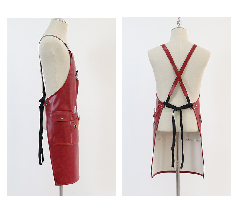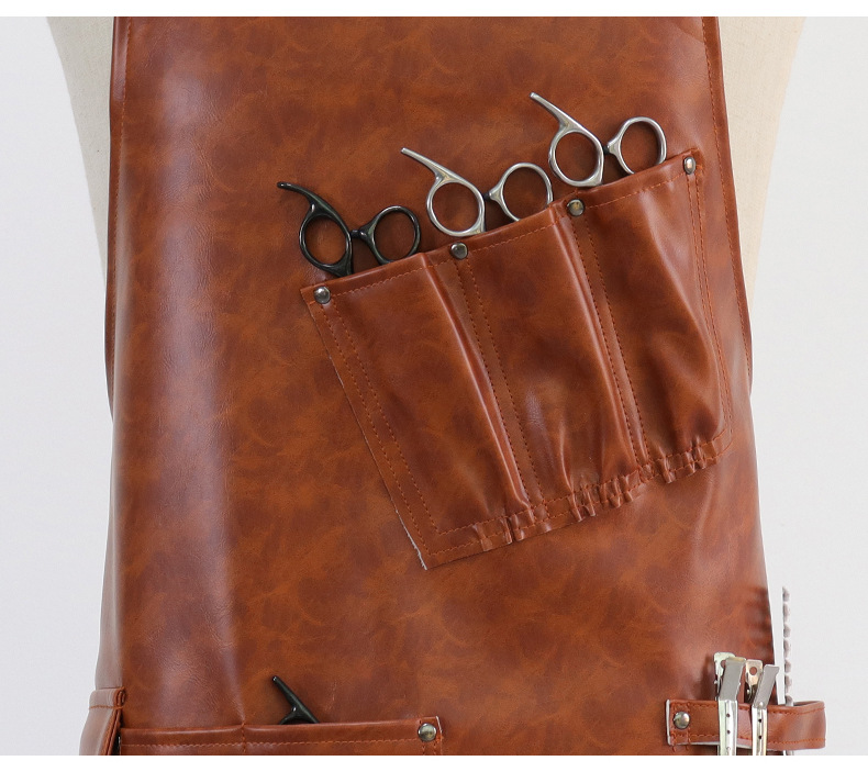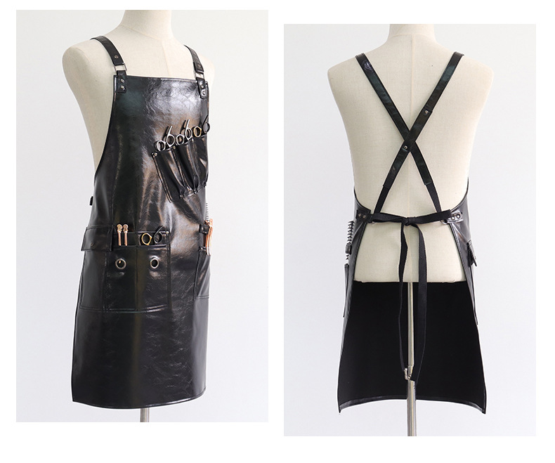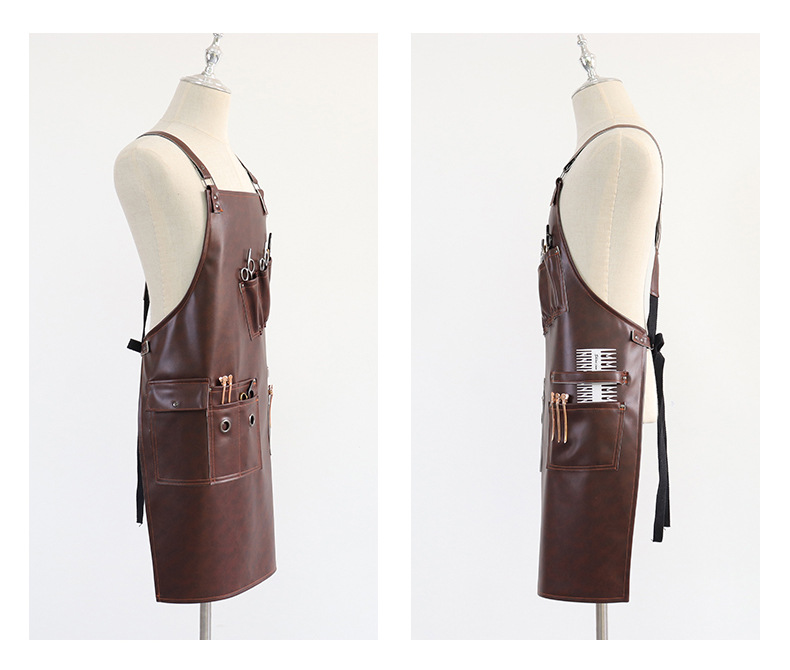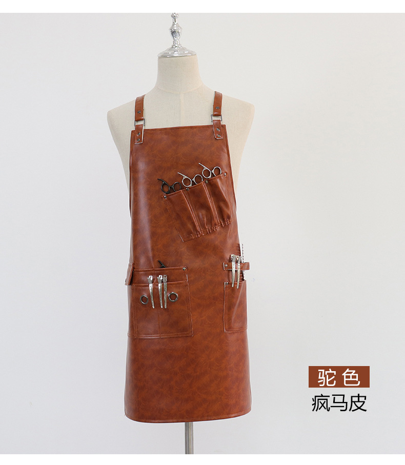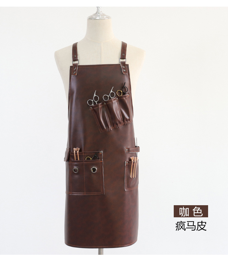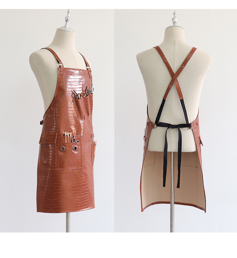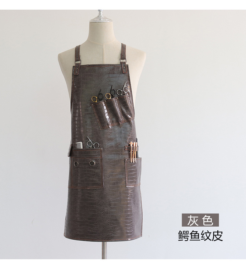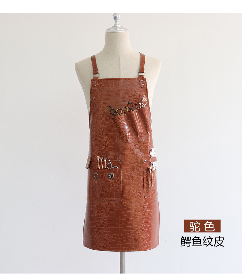 Transfronterizo Amazon Europa y América con fondo de terciopelo PU delantal de cuero de caballo loco corte de pelo barbero ropa de trabajo delantal de cuero de cocodrilo impermeable