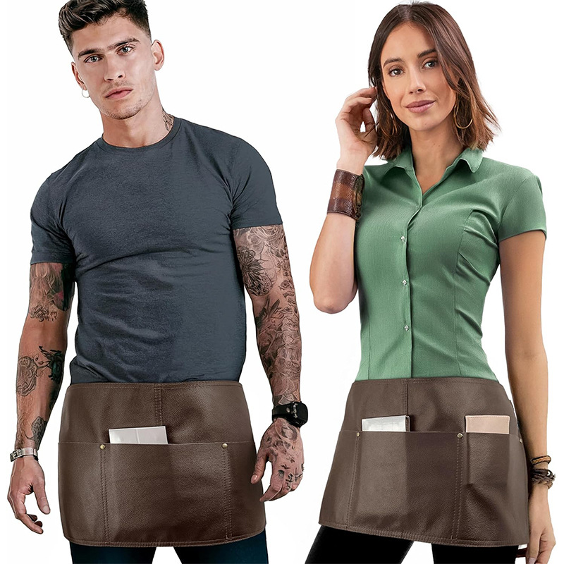 Delantal de piel de PU de Amazon transfronterizo, impermeable y a prueba de aceite, corte de pelo, ropa de trabajo, delantal de cocina para el hogar, personalizado al por mayor