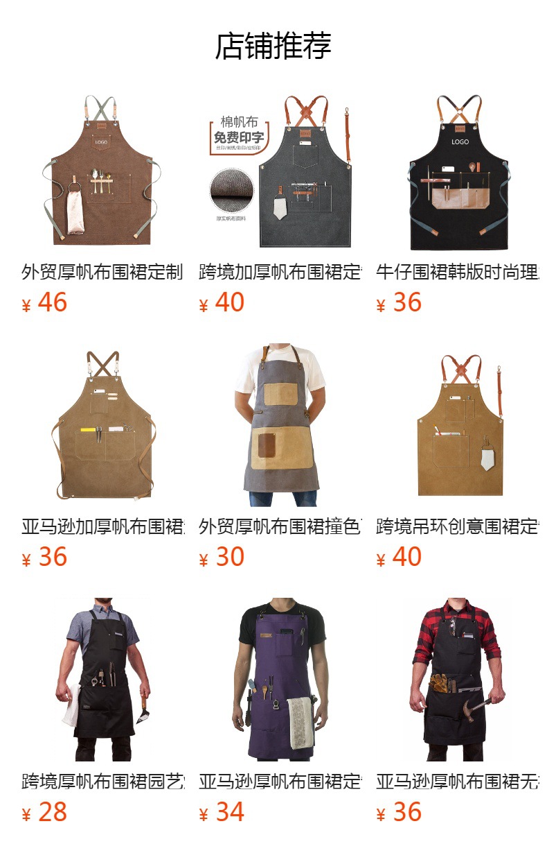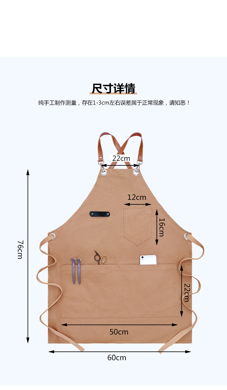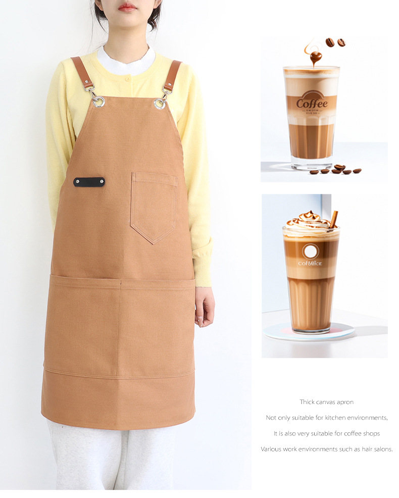 Transfronterizo Amazon grueso lona delantal logotipo personalizado barbero ropa de trabajo cafetería té con leche delantal al por mayor