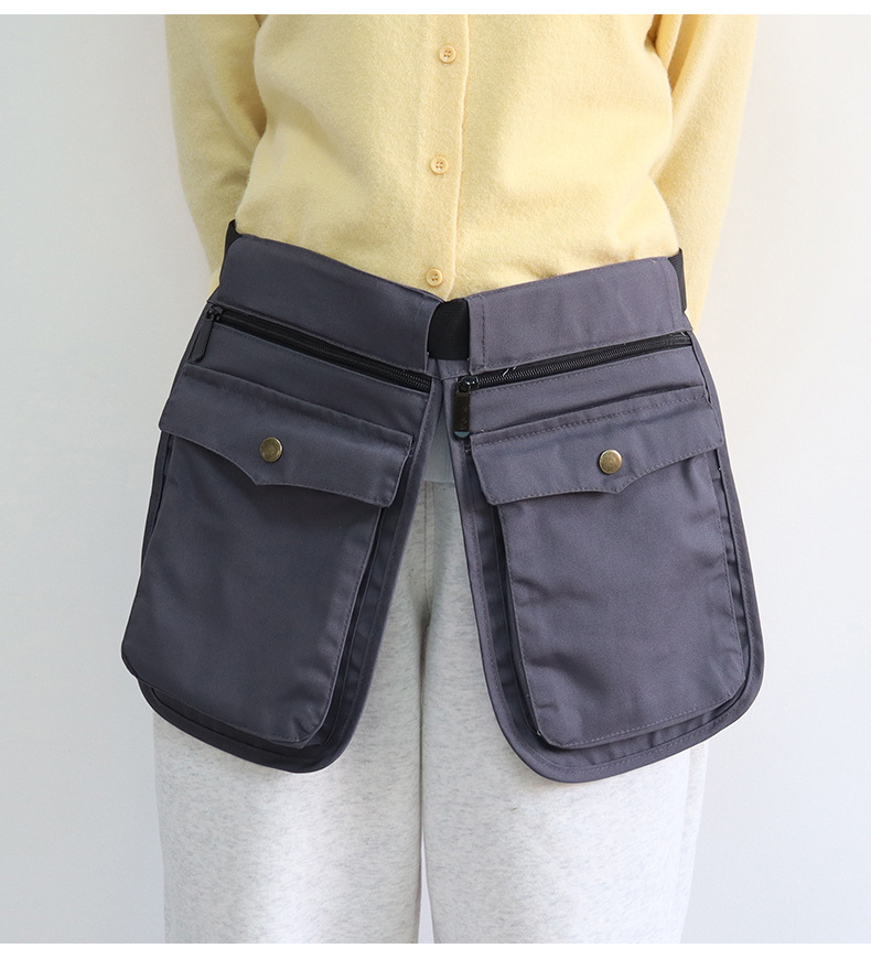 Transfronterizo nuevo estilo gris oscuro bolsillo simple con cremallera delantal moda Amazon multifunción exterior riñonera ajustable