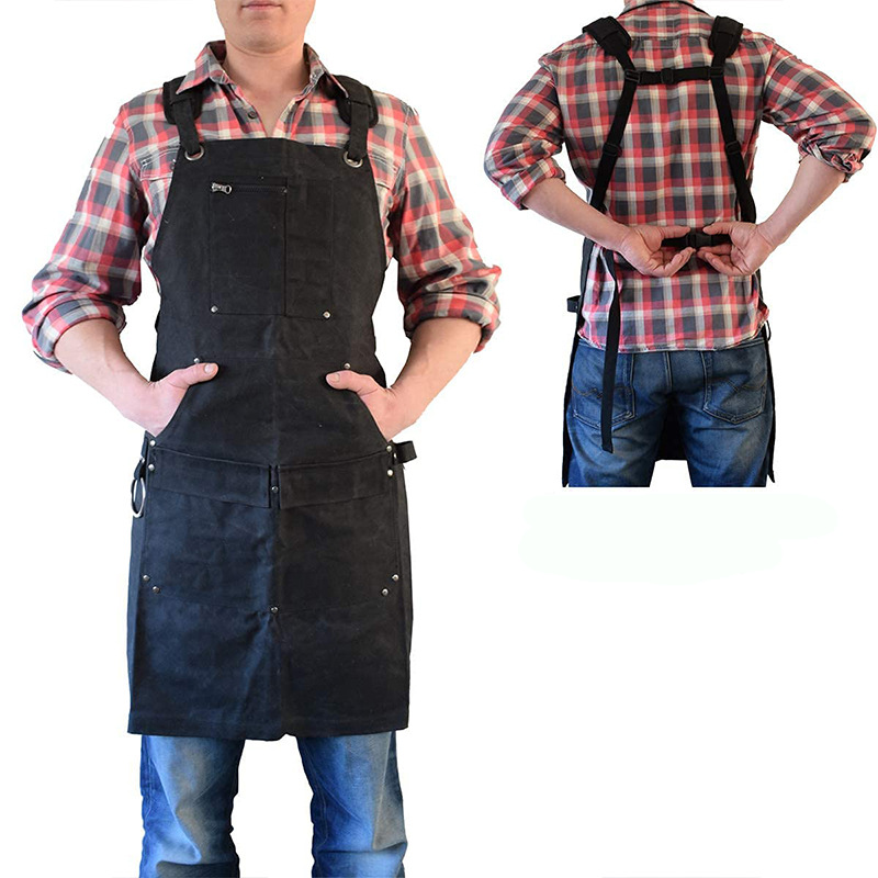 Comercio exterior Amazon delantal lienzo de cera logotipo personalizado carpintería horticultura cocina delantal doméstico al por mayor