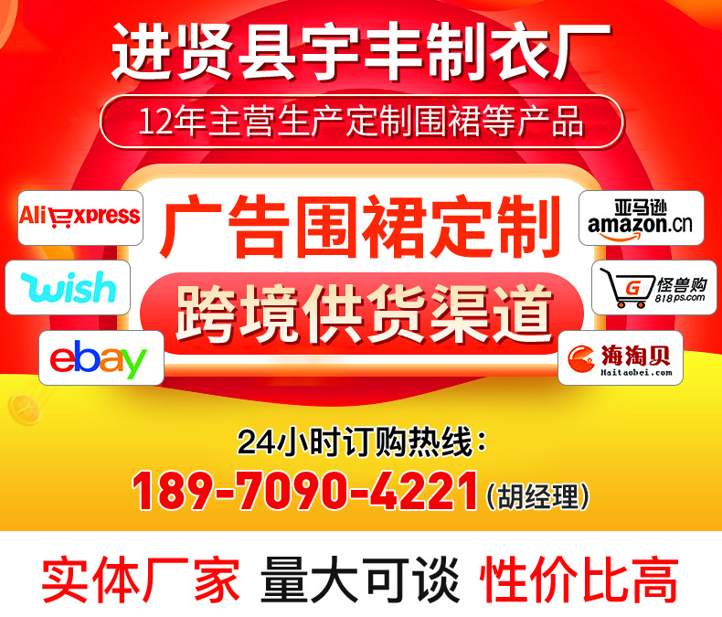 Comercio exterior Amazon delantal publicitario algodón camarero de catering cocinero ropa de trabajo delantal de cocina doméstica al por mayor personalizado