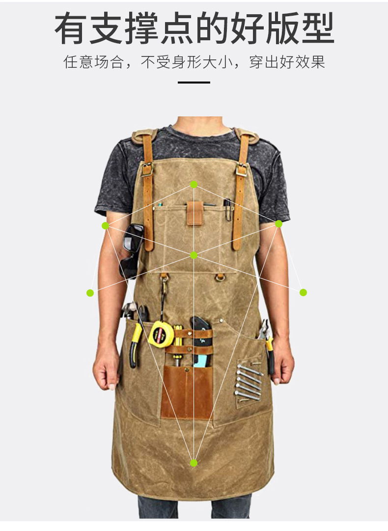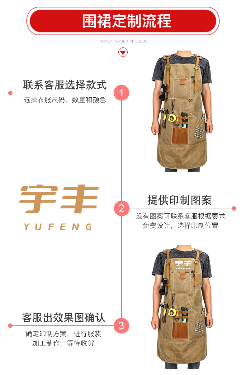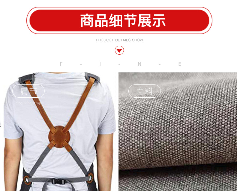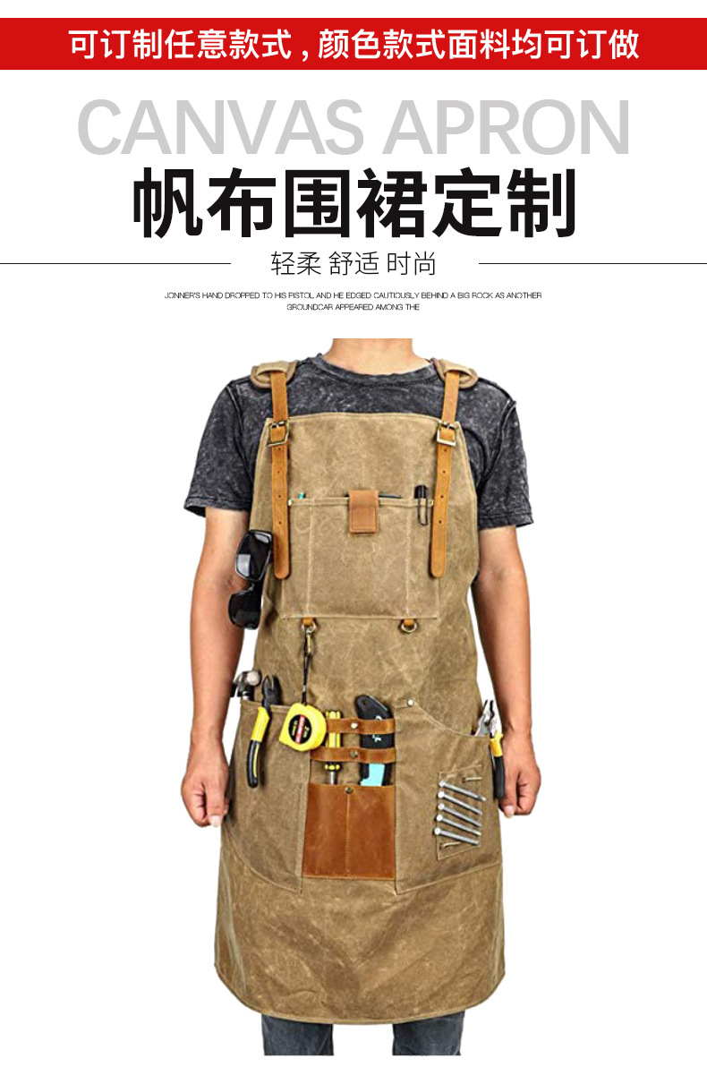 Comercio exterior delantal de lona gruesa logotipo personalizado carpintero electricista barbero ropa de trabajo tipo correa de bolsa delantal al por mayor
