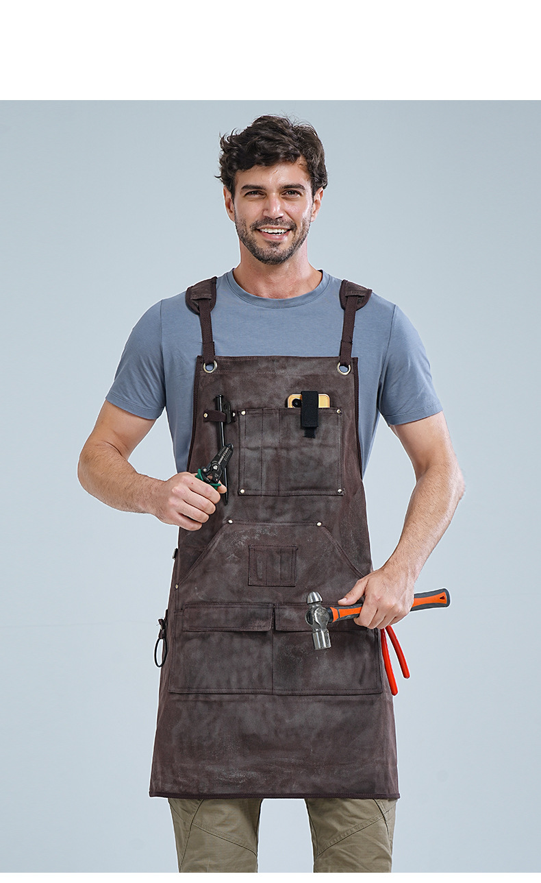 Comercio electrónico transfronterizo engrosar herramientas de lona delantal cuero de bolsillo electricista carpintería ropa de trabajo de cera delantal de lona