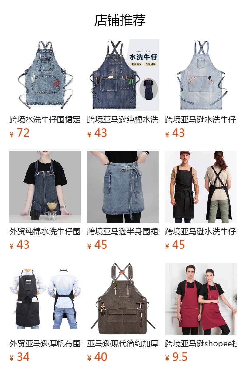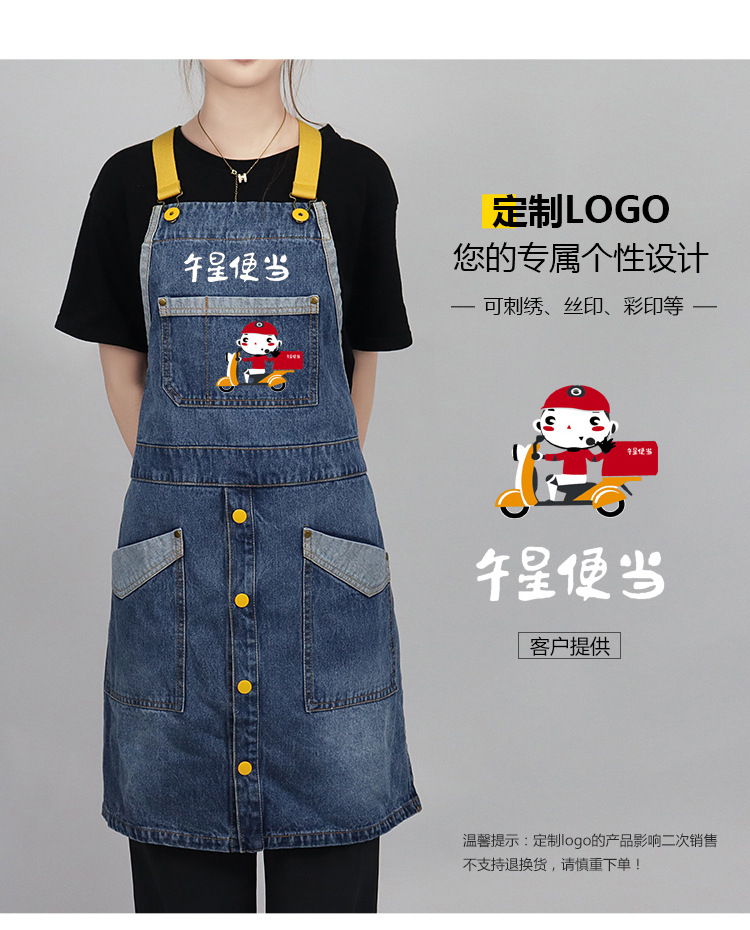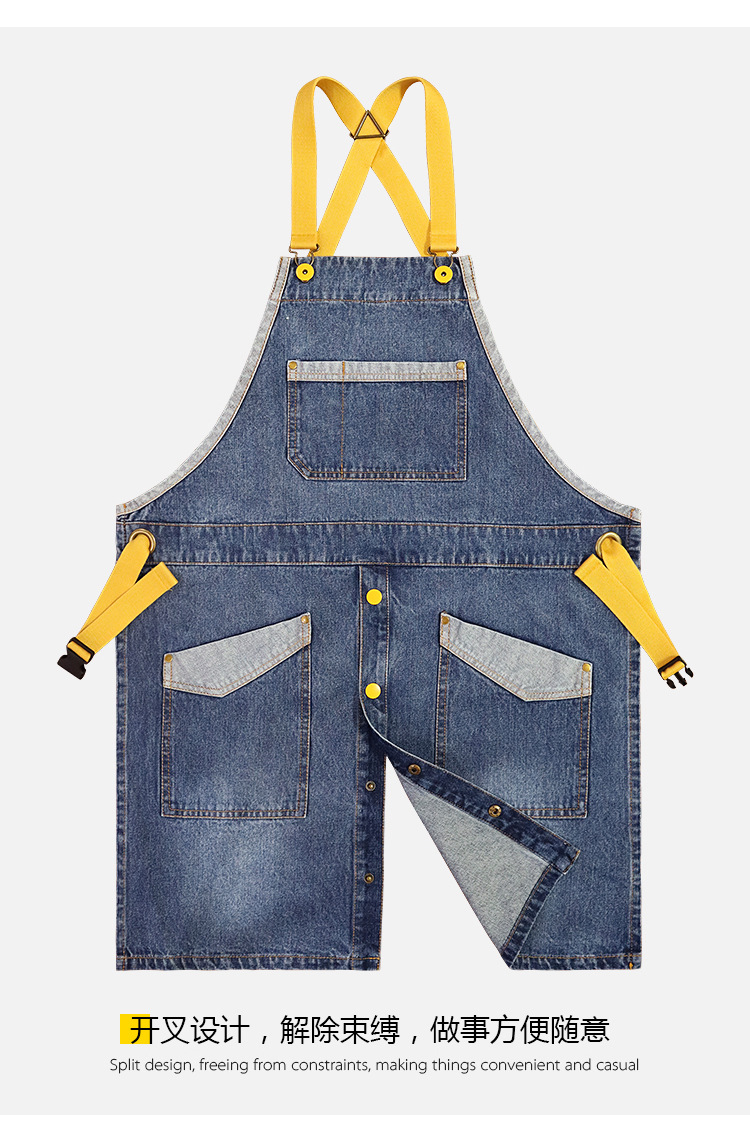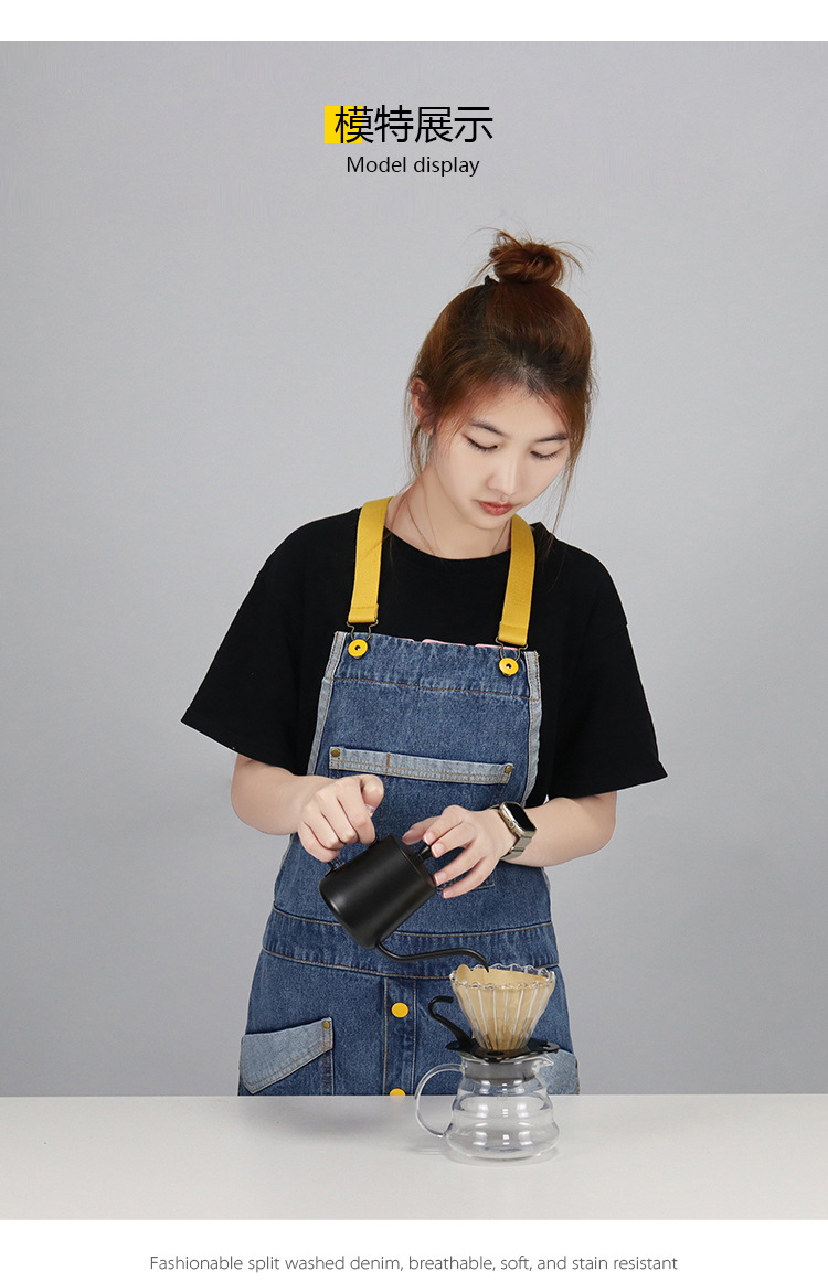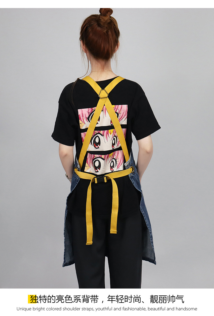 Comercio exterior agua lavada denim delantal barbero tostador café jardinería restaurante ropa de trabajo nuevo delantal de moda de color contraste
