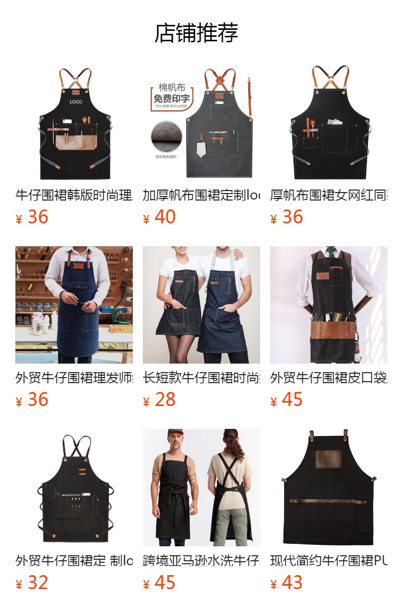 Amazon delantal vaquero cocina café pastel salón de belleza barbería ropa de trabajo delantal casero al por mayor