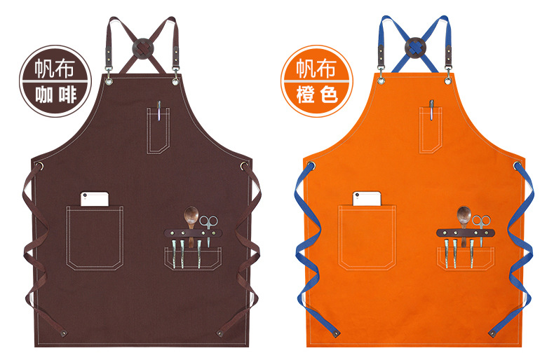 Transfronterizos Amazon canvas delantal logo personalizado moderno minimalista correa de moda barista delantal de ropa de trabajo
