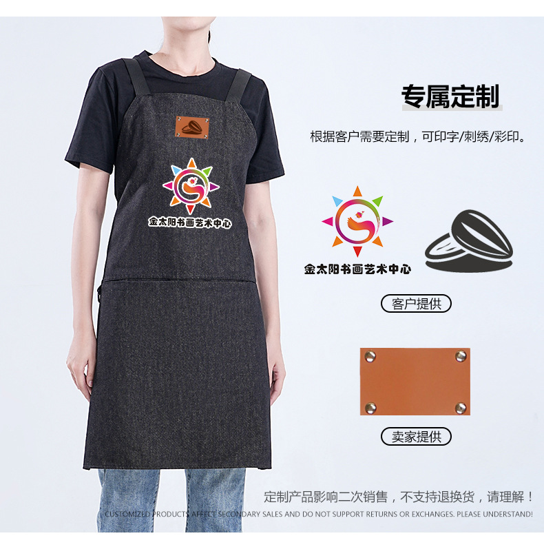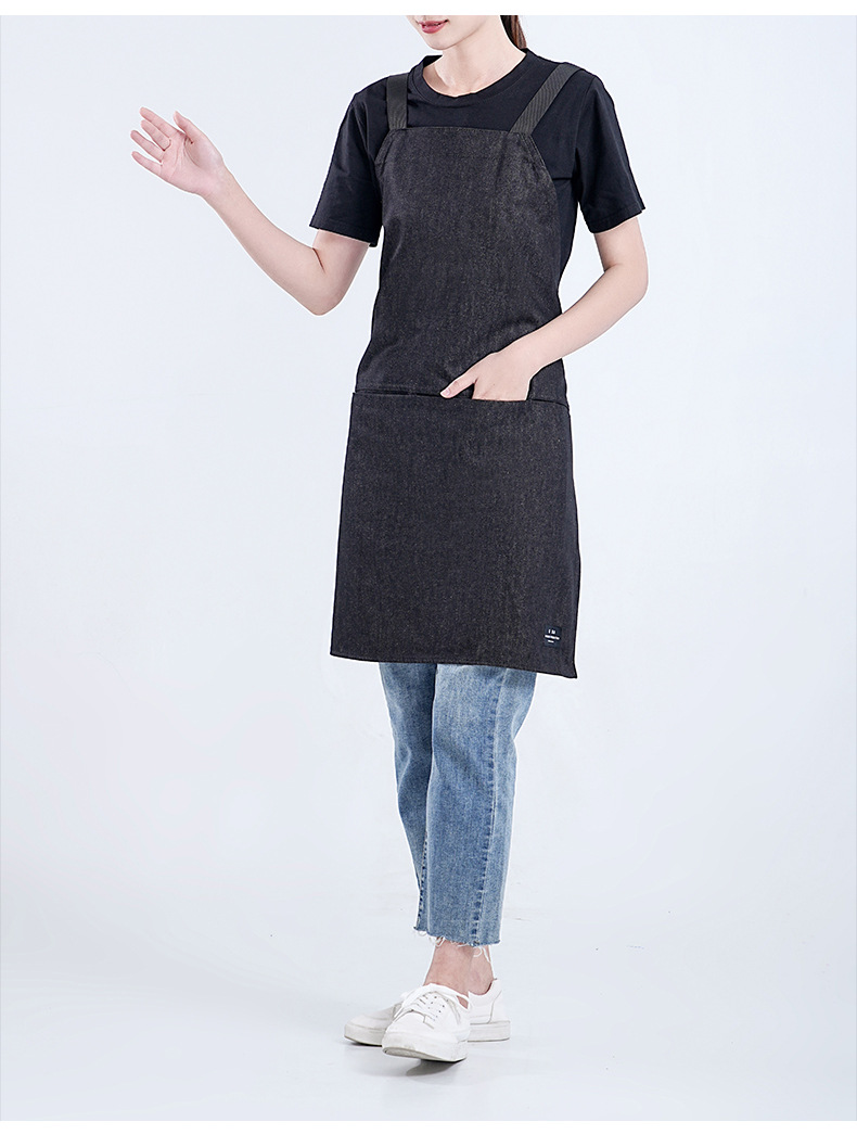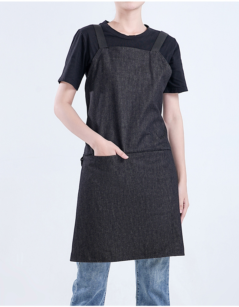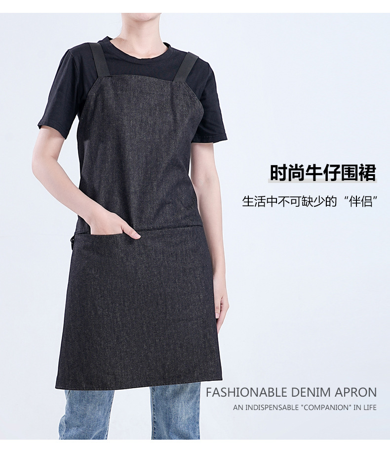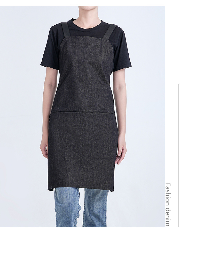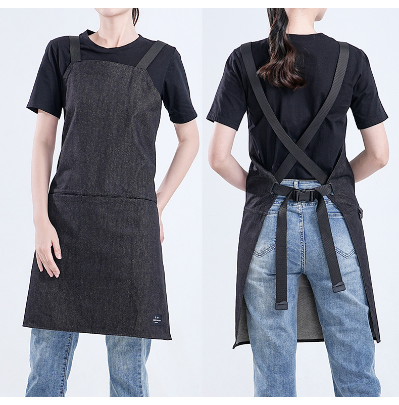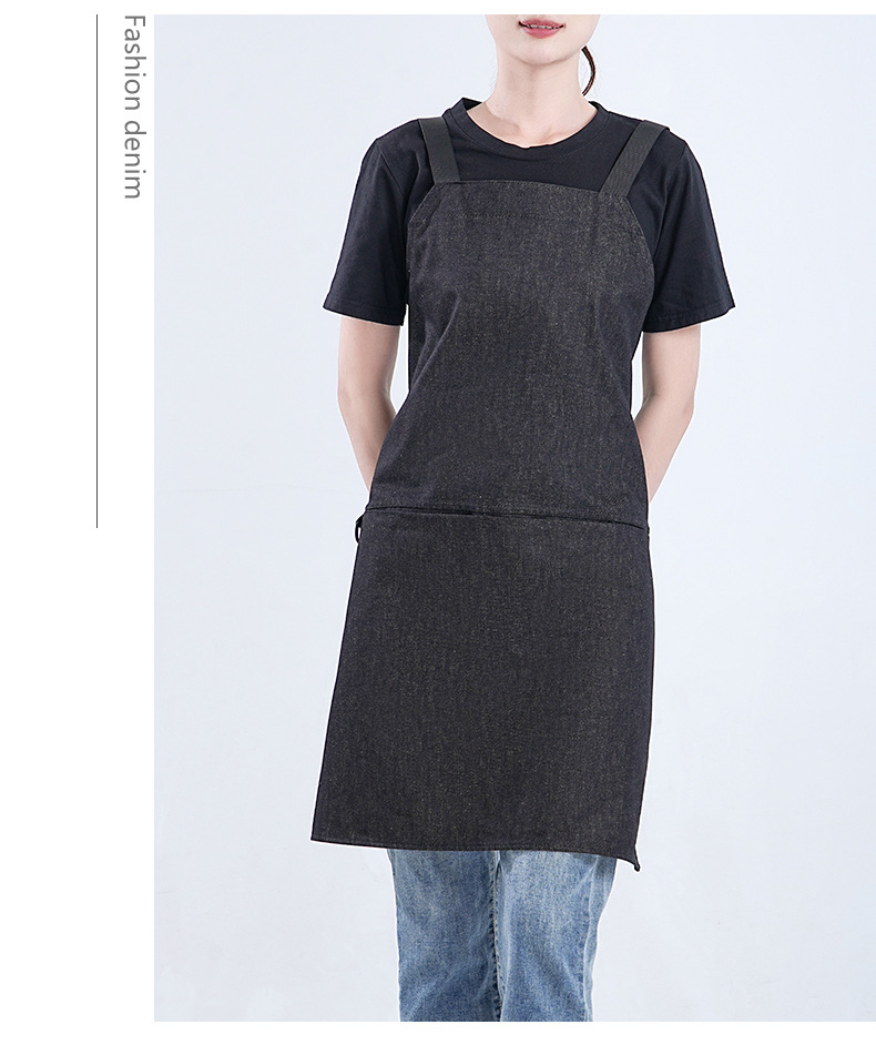 Amazon moda minimalista denim delantal personalizado logotipo leche té horneado camarero ropa de trabajo barista delantal