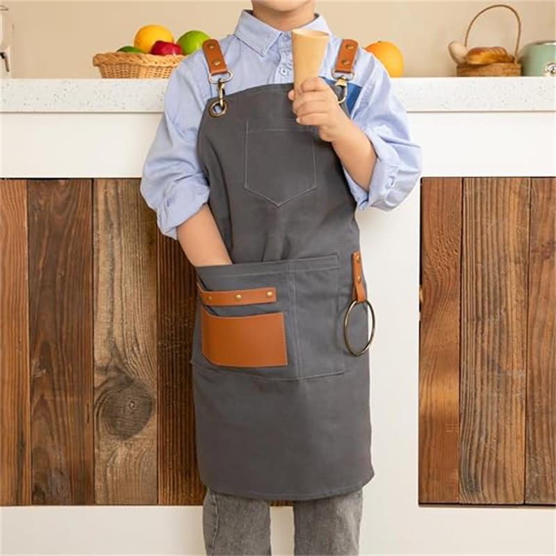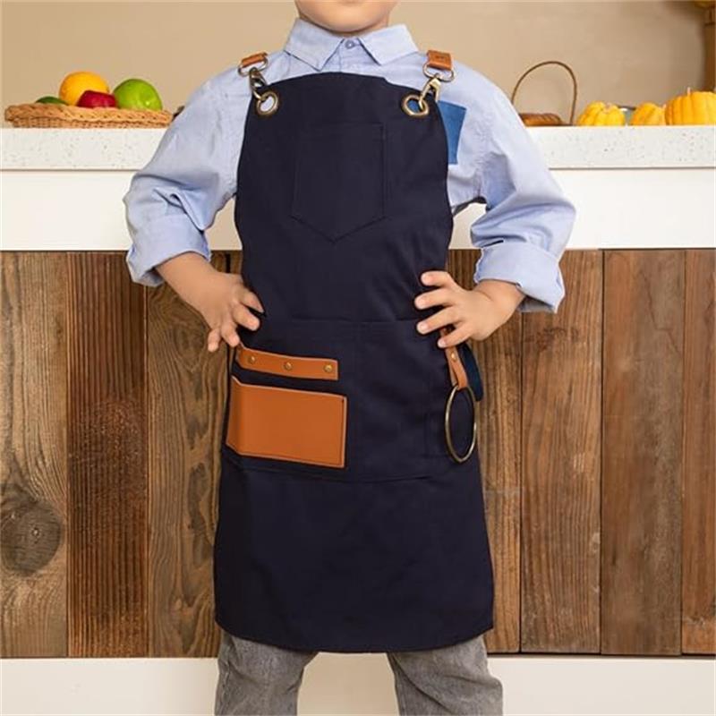 Amazon engrosamiento lona delantal logotipo personalizado pintura para niños repostería mono para padres e hijos delantal para niños al por mayor