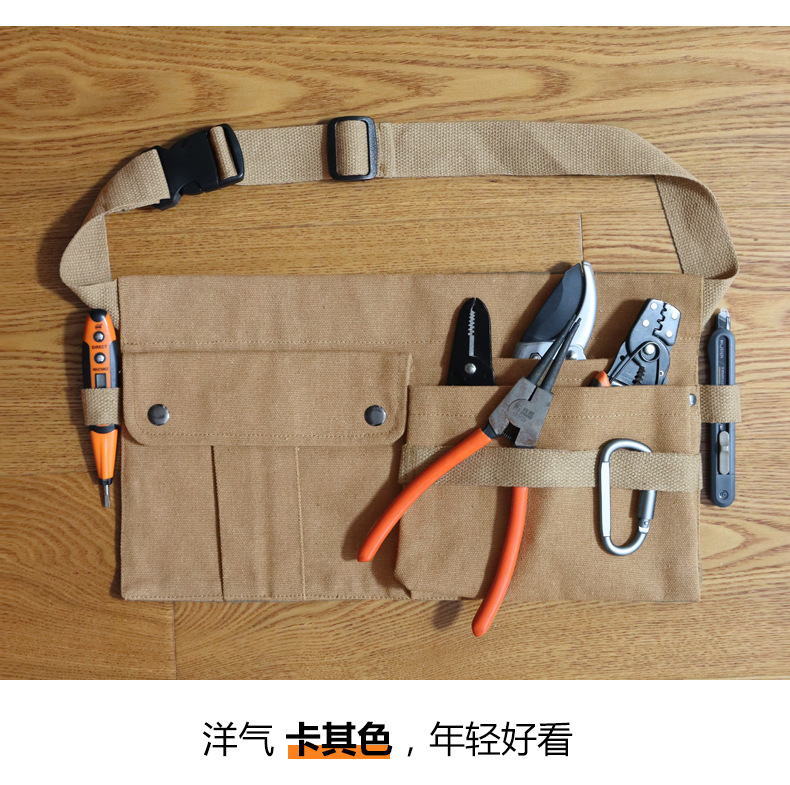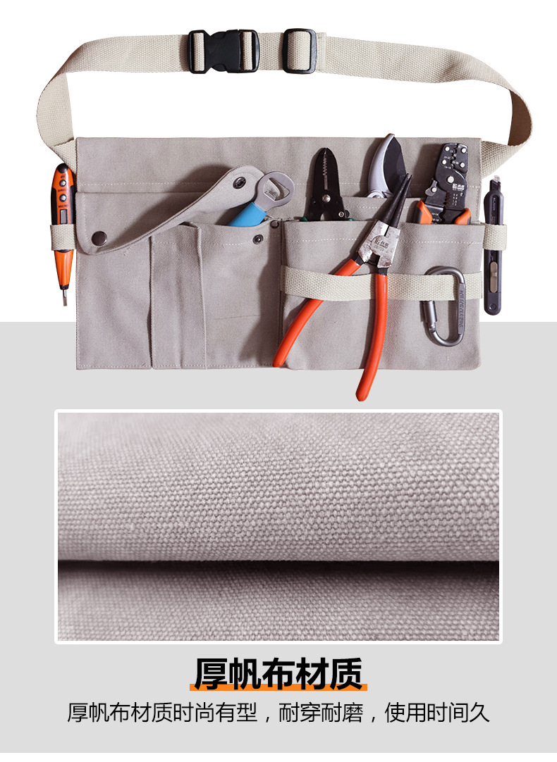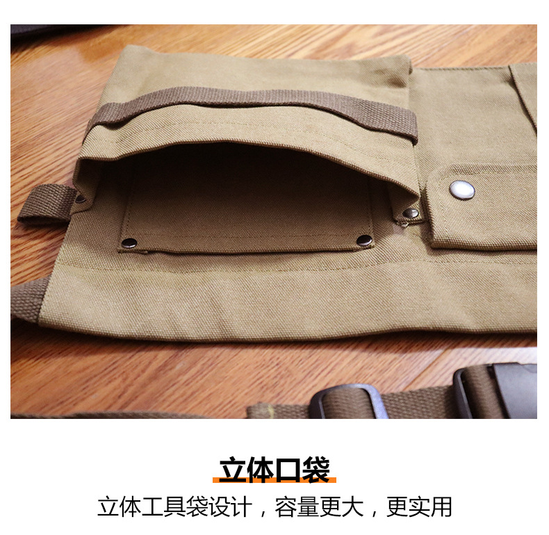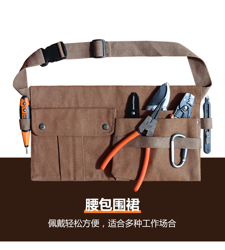 Amazon lienzo delantal medio-longitud cintura corta bolsa electricista carpintería TRABAJO ROPA herramienta delantal medio-longitud fábrica al por mayor